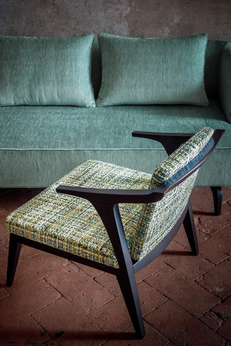 A very unique tartan, from an idea of the Rubelli Design Studio, on a cotton ground with warp in semi-shiny viscose. Suitable for heavy use.