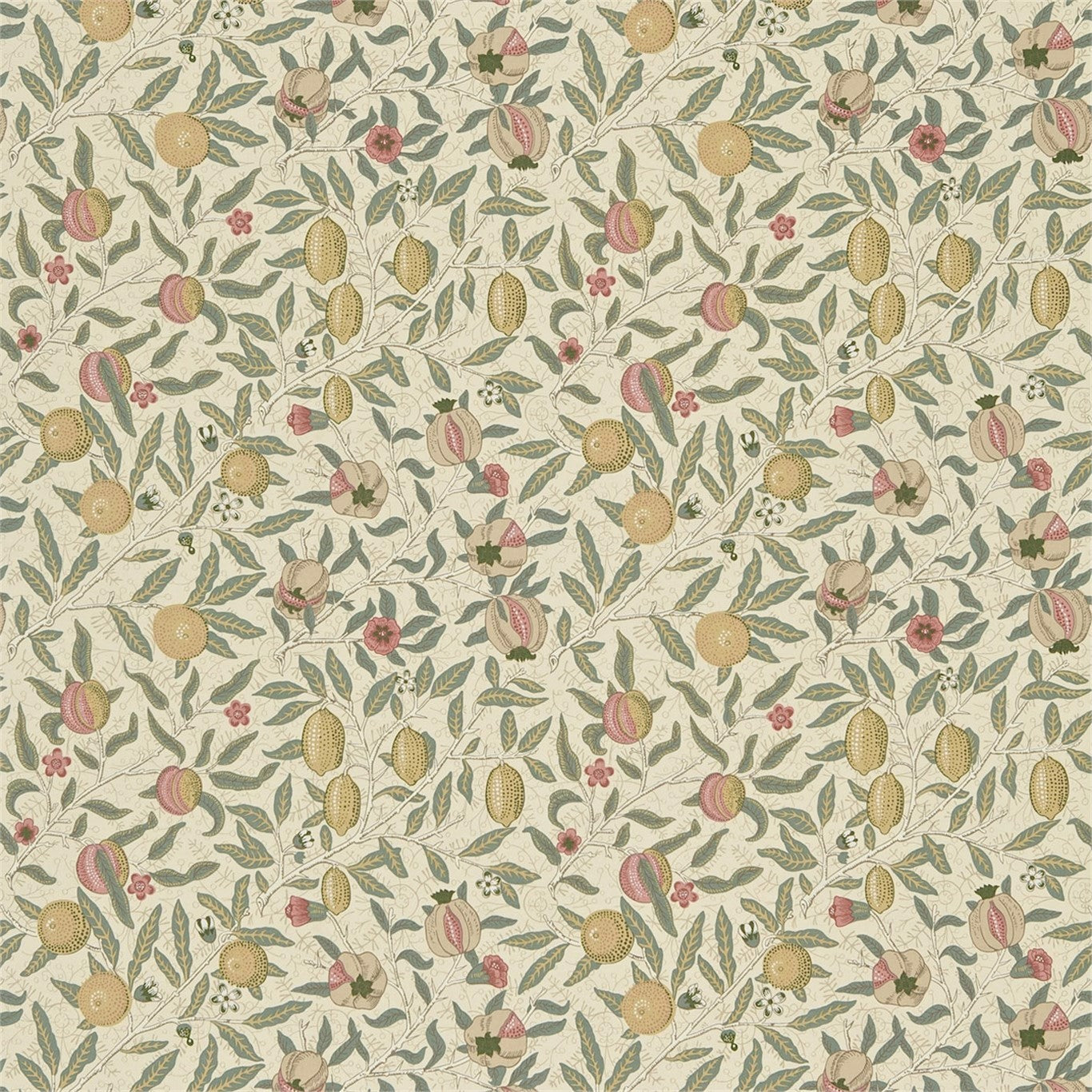 An abundance of ripened pomegranates hang from the branches of an overflowing tree amongst flora and fauna and printed over fine branches in the background to give the design greater depth. One of the earliest Morris wallpaper designs first produced in 1864, this fabric has been reproduced as a tapestry weave cloth suitable for upholstery and soft furnishings.