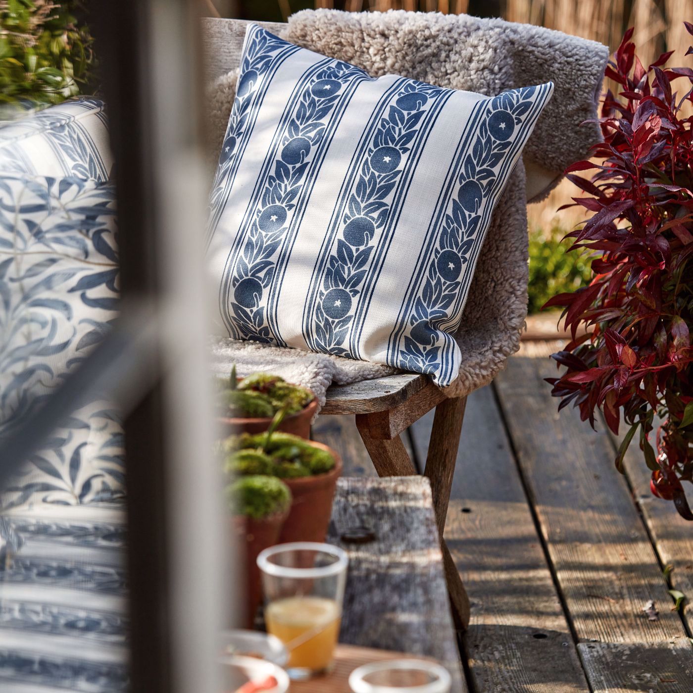 The Fruit Stripe harks back to one of William Morris’s first designs, 1864’s Fruit, and is the joint-first stripe to feature in a Morris & Co. collection. The Fruit Stripe design represents the new essential tool in the craftsperson’s toolkit, being perfect for both leading feature design and as a coordinating pattern.