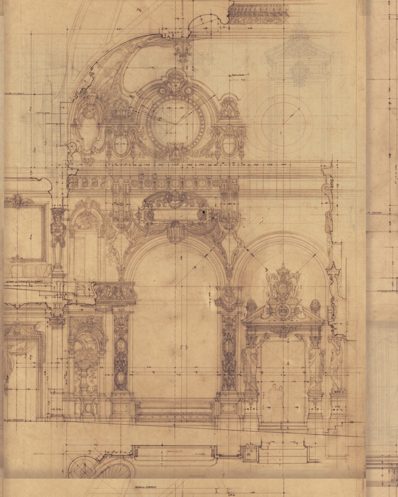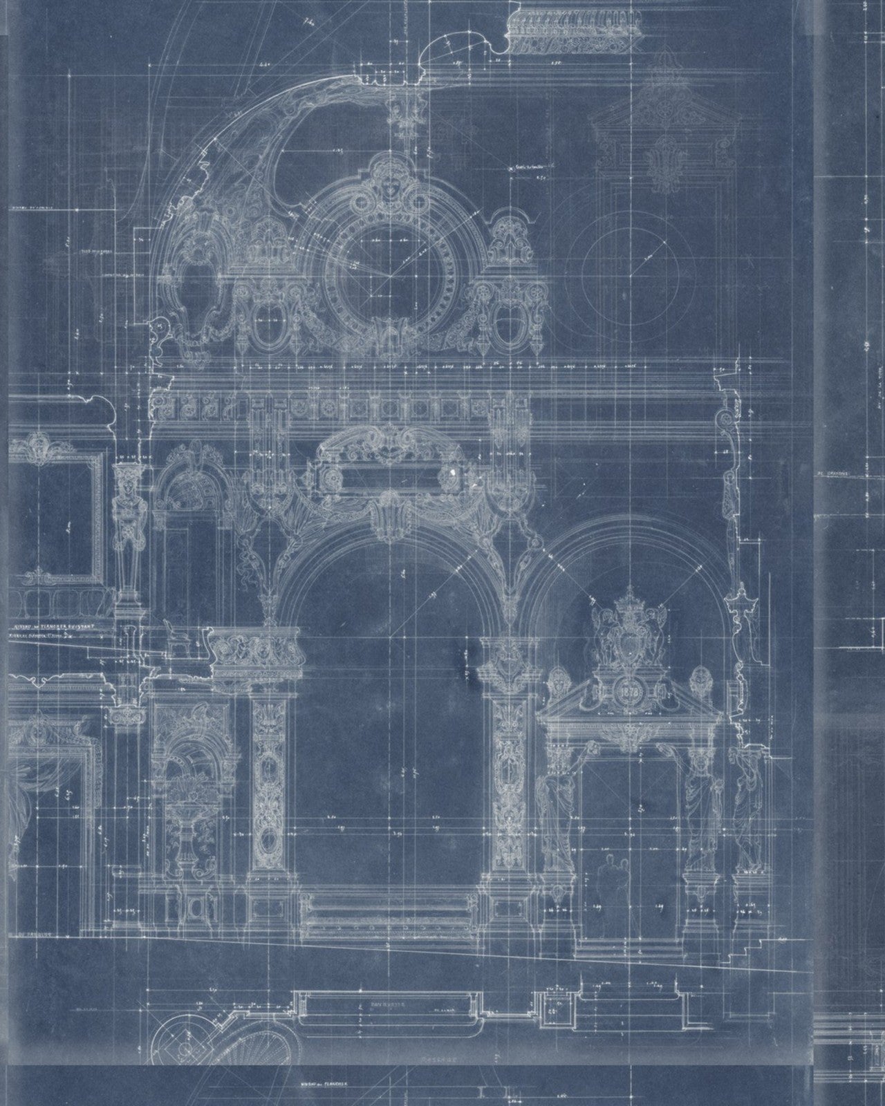 A fantastic and modern piece in indigo, inspired by the work of the famous French architect, Charles Garnier. The design is printed over 3 rolls.
