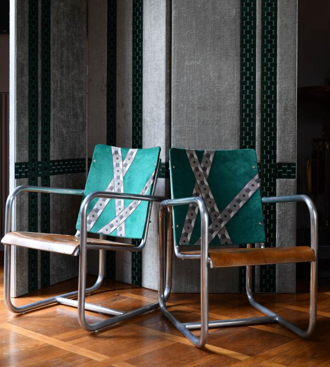 Embrace contemporary design with this geometric braid, where interlocking hexagonal motifs meet refined satin luminosity. At 55mm width, its structured pattern and subtle sheen deliver modern sophistication to upholstery, drapery, and decorative accents. A versatile trimming that bridges minimalist and maximalist aesthetics with understated elegance.