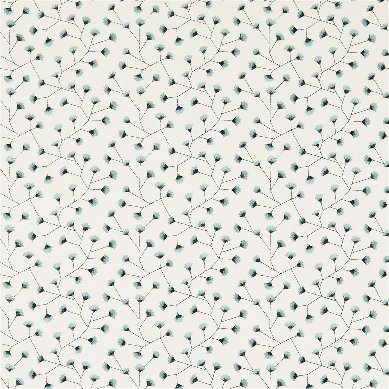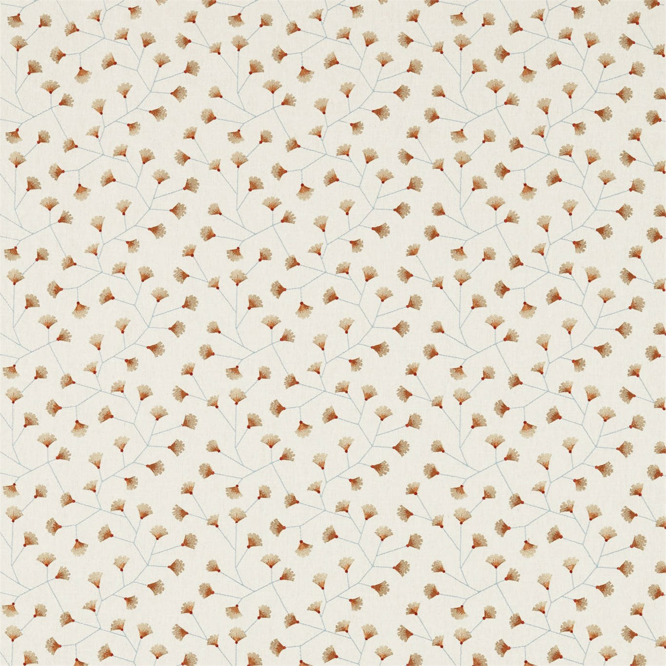 This embroidered leaf trail fabric has a modern, country style and features abstract gingko leaves in a range of gentle colourways on neutral backgrounds. Team with stripes or larger florals.