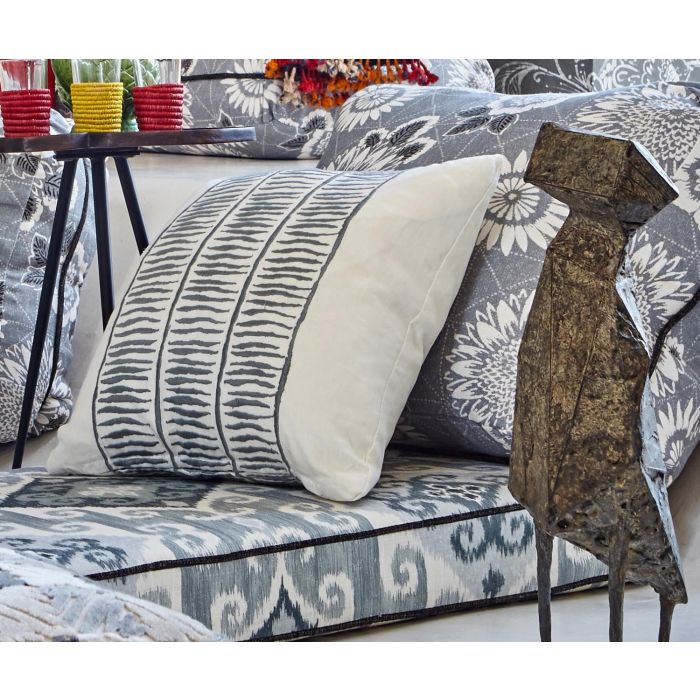 Stunning embroidered dashed furrows feature on this substantial linen fabric. Rich in visual complexity and anchored by a subtle ground, this light design is perfect for cushions, curtains and blinds.