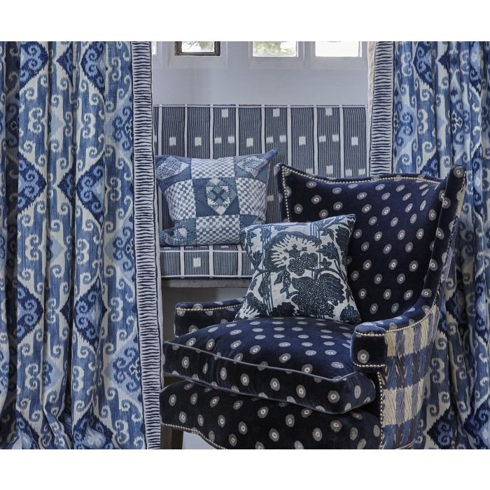 Directly inspired by a traditionally hand-made ikat weave in rich indigo blues, softly drawn stripes are combined with subtle squares on cool white. Digitally printed onto a wonderfully soft yet heavy basket weave linen/viscose ground. A perfect fabric for stunning upholstery, curtains, cushions and bedcovers.