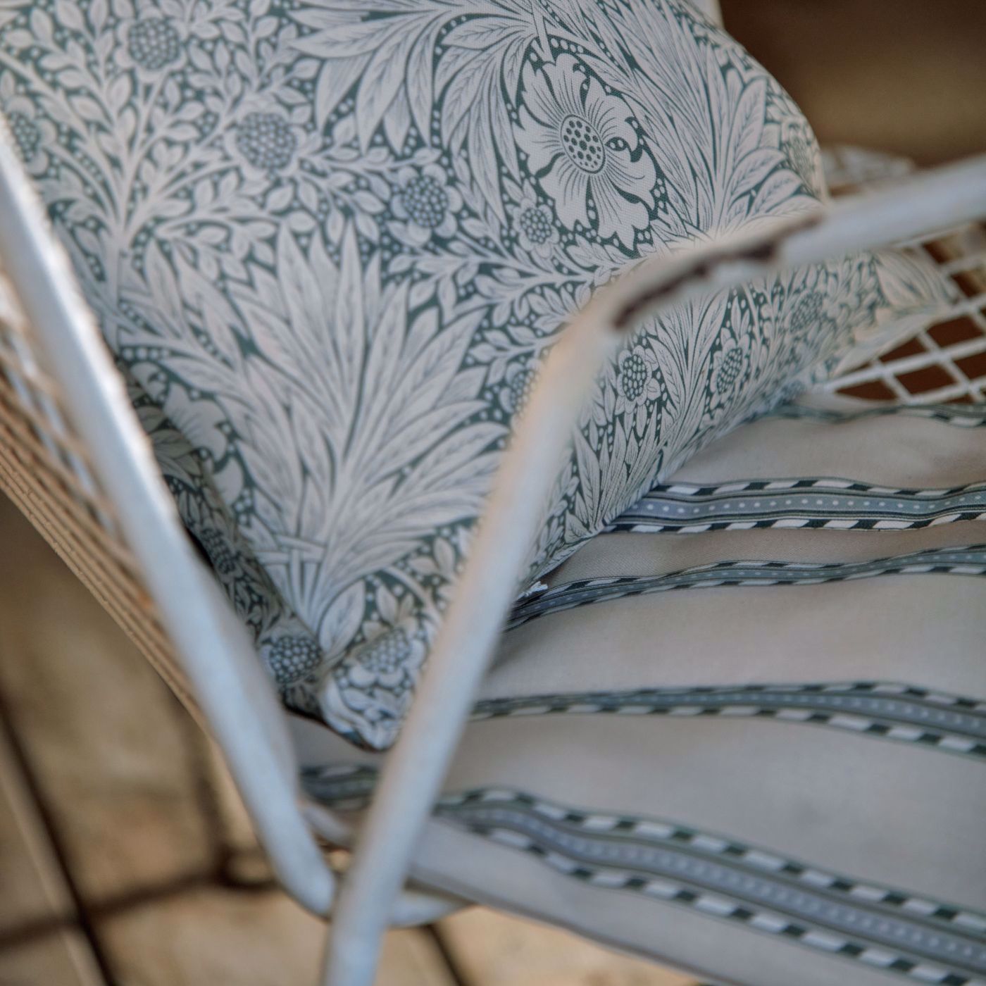 Inspired by the framing border of a Morris & Co. carpet woven at Merton Abbey in 1883, the Holland Park Stripe is the joint-first stripe design to feature in a Morris & Co. collection. Perfect as a coordinating fabric or as a simple centrepiece, the Holland Park Stripe introduces a new essential option to any craftsperson’s toolkit.