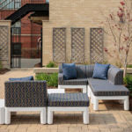Homestead, a Design Studio favorite, is a contemporary graphic pattern with tribal characteristics. In 11 bright, eye-catching colorways, including Running Waters and Smoked Silver, this 54″ width indoor/outdoor upholstery fabric is bleach cleanable and bacterial resistant with an abrasion resistance of 100,000 Double Rubs (Wyzenbeek, Wire Screen). The linear qualities within the field of the fabric and the pencil-like nature of the geometric design combine to create a dynamic fabric pattern ideal for roof-top bars or poolside lounges. IMO Wheelmark Certified, Homestead is a lively choice for marine applications designed for harsh UV elements.