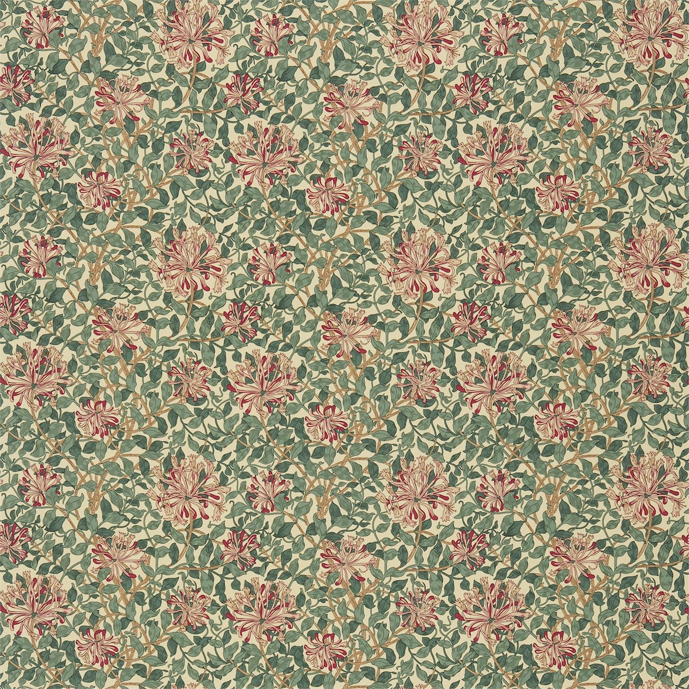 Honeysuckle designed by May Morris in 1883 is a realistic arrangement of rambling flowers and entwining leaves. Although best known for her work with embroidery Morris youngest daughter May also designed several wallpapers. Reproduced from samples in the Morris & Co. archive Honeysuckle is available in classic and naturalistic colourways on printed cotton.