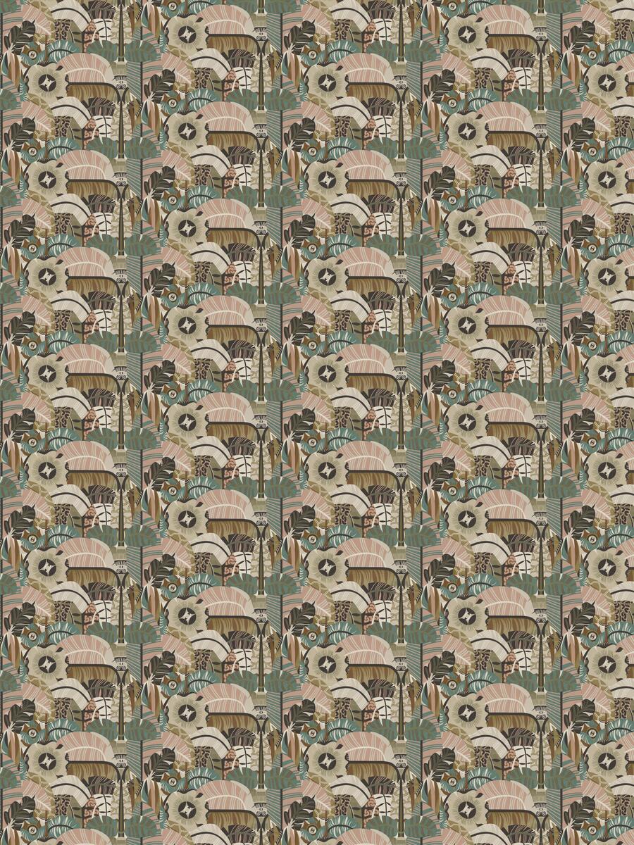 Coloured in a pastel palette of brown, beige, pink and turquoise, our Hypnotic Safari wallpaper features designs from an artwork series depicting the cycle of life. Can you spot the peeking eyes in Petra Börner’s stylistic signature cut paper pattern?