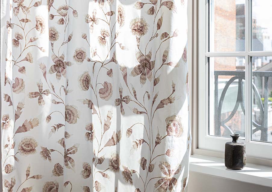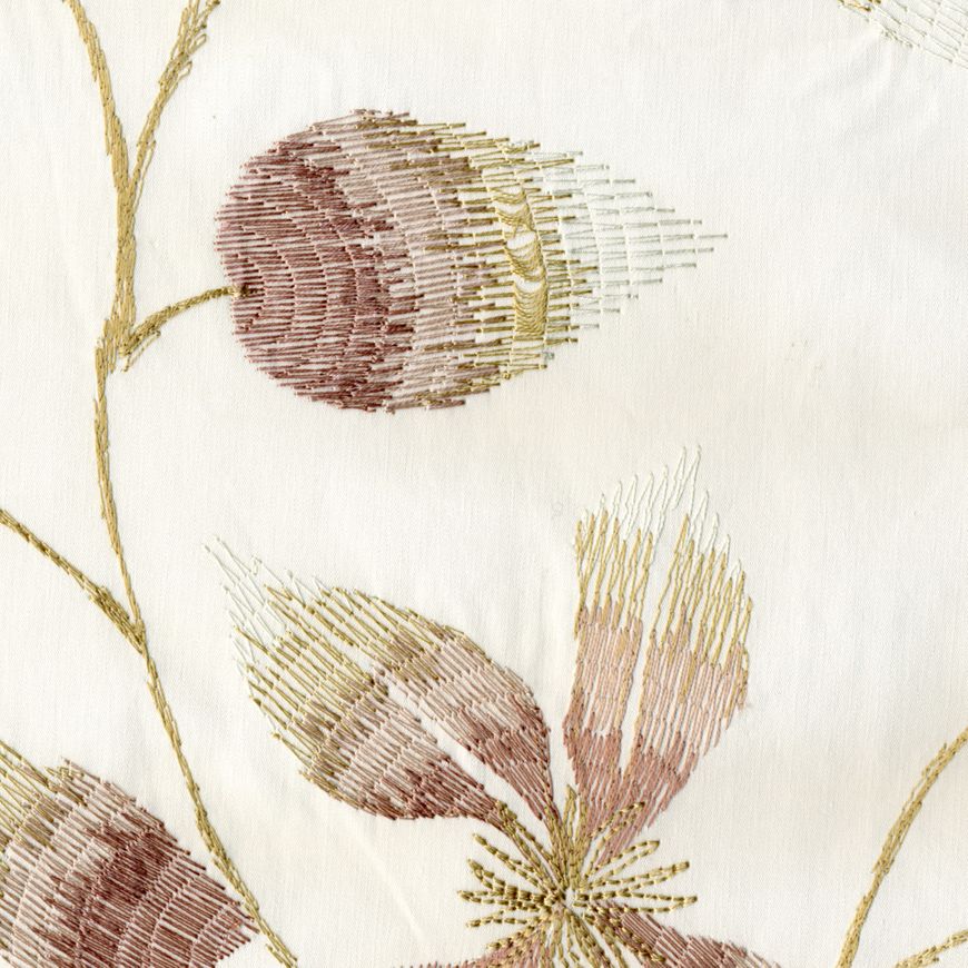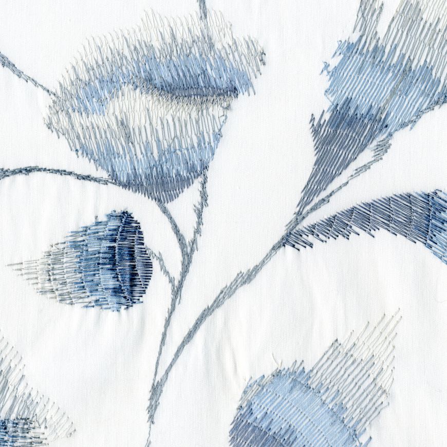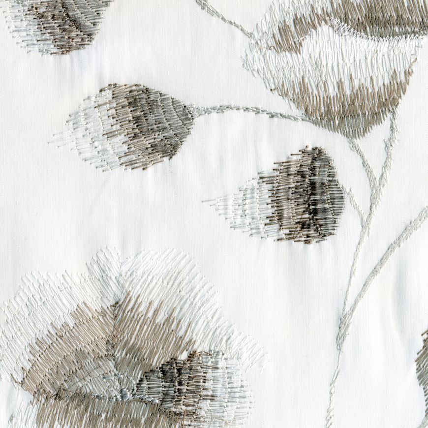 Illumination showcases large-scale flowing embroidery on a wide drapery fabric, designed to add dramatic texture and elegance to interiors.