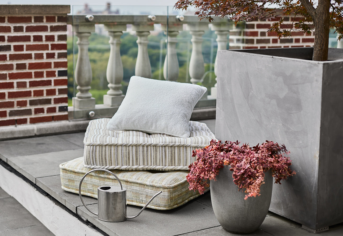 A slight herringbone is hidden beneath the plush surface of Invite, giving added interest to this usable plain through a pleasing combination of pattern and texture. Invite works as well for indoor use as for outdoors.