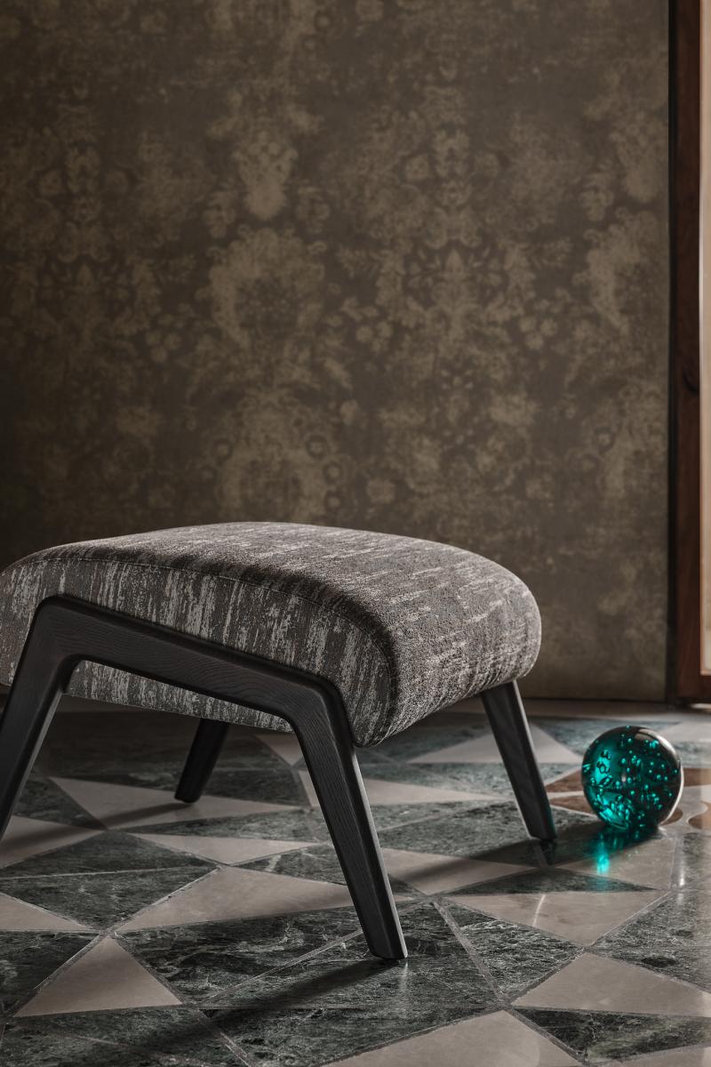 A contemporary jacquard whose surface pattern recalls the materials that Carlo Scarpa used in his architectural works: natural stone or stucco finishes characterised by their textures. Some versions of Jupiter evoke the reflections of daylight and moonlight on the water of the lagoon. Numerous different yarns are used to create the many colour effects: a symphony of neutrals, light and dark. Jupiter has a warp in evo nylon, an eco-sustainable yarn obtained from castor seeds and used by Rubelli for some years now.