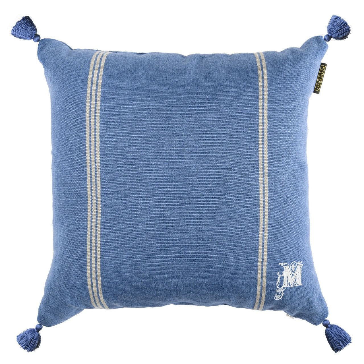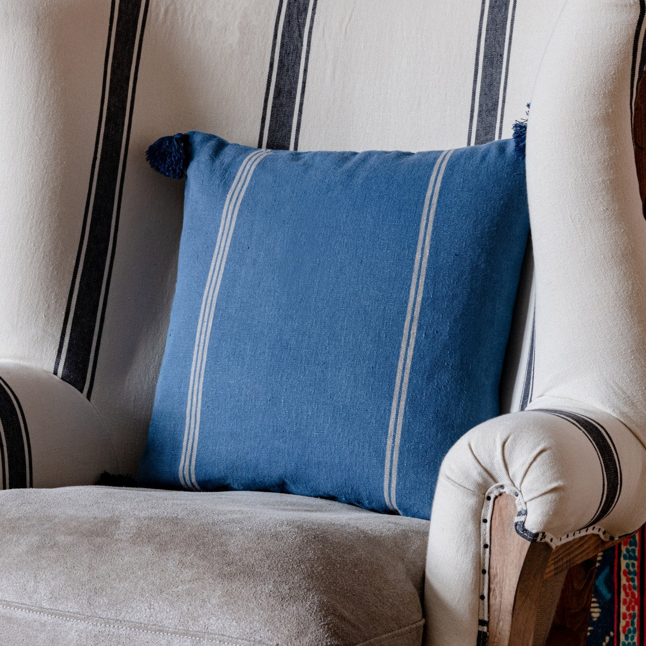 A provincial and royal blend, the woven KATALIN STRIPE cushion is the expression of original folk in patrician colours. Hand-finished with blue cotton tassels on each corner, it has 100% duck feathers filling.