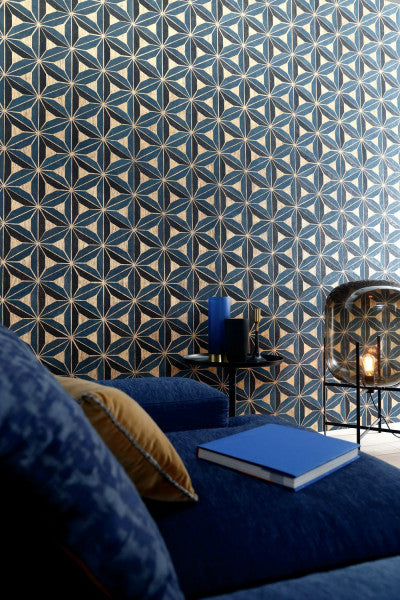 The Samurai perform a dance with a katana, a Japanese sword. The precise movements, when broken down, inspired the large geometric motif, cut and applied by hand to the metallic plain "Hada".