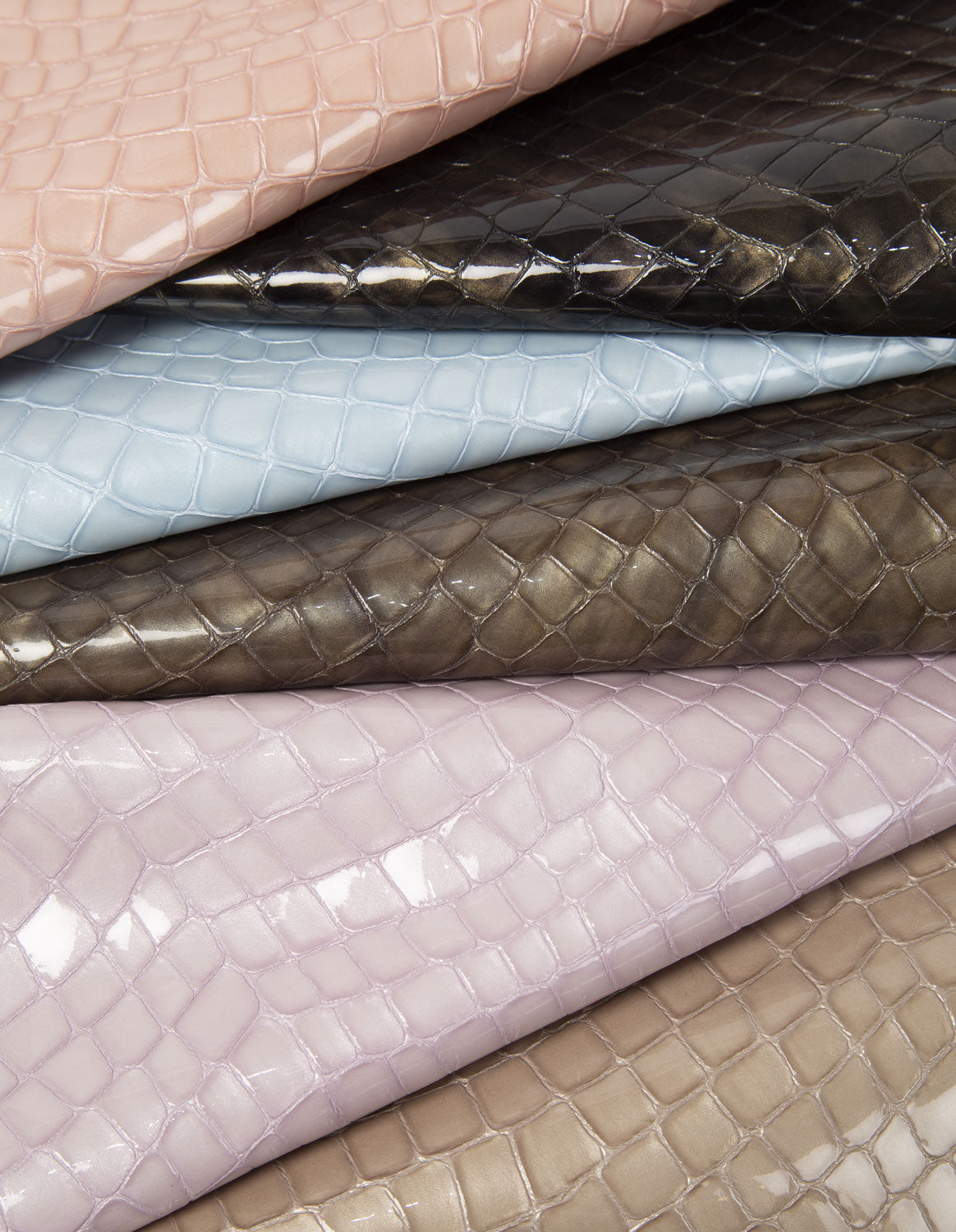 High gloss blended with exotic crocodile texture; Key West is our first animal embossed leather. Supplied in half hides in a selection of fashion-forward colours, the palette ranges from classic neutrals to pretty pastels. Perfect for inlaying and light upholstery, this real leather is a marvellous addition to our animal inspired embossed range.