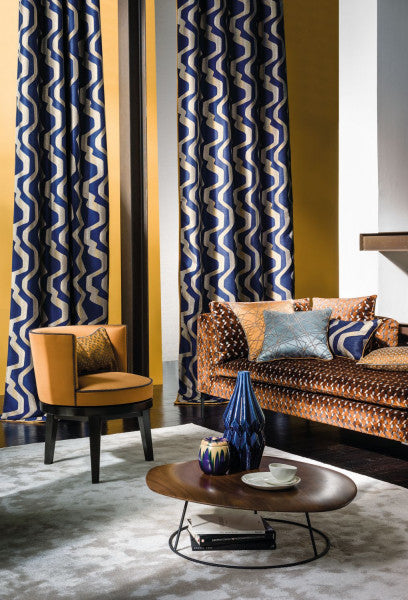 Kokedera is a Graphic velvet on a textured base of two qualities, viscose and polyester, gives the fabric a matte and glossy effect. Very sought-after, this soft moss covers Japanese gardens. Kokedera - Kyoto’s «Temple of Moss» - is a garden composed of 120 varieties that are different in shape and colour, dark, bright or muted. It is embodied by this sublime geometrical velvet.