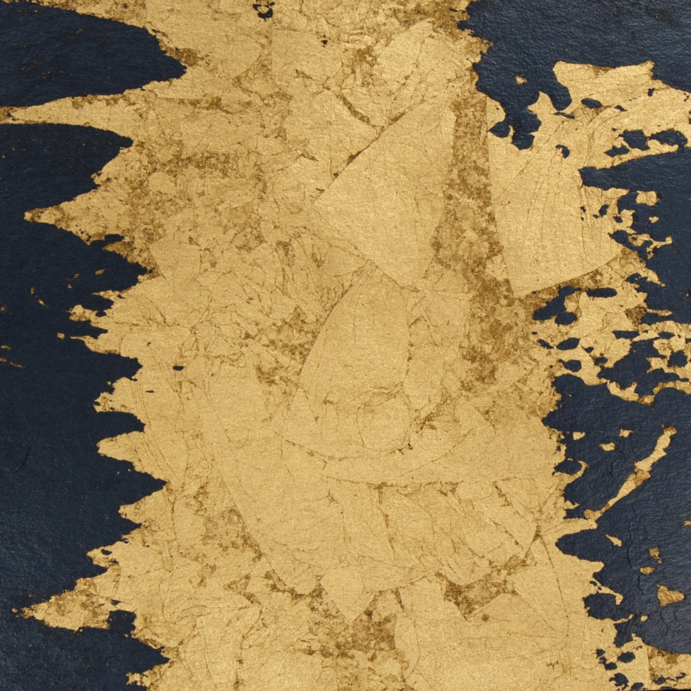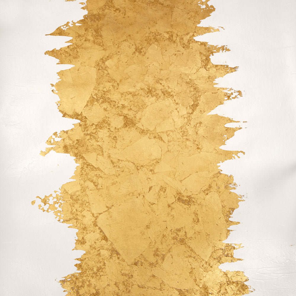 The Kozari collection's bold vertical pulsations of gold or silver metallic leaf pop from subtly textured, high-gloss backgrounds, delivering fluid energy to any space.