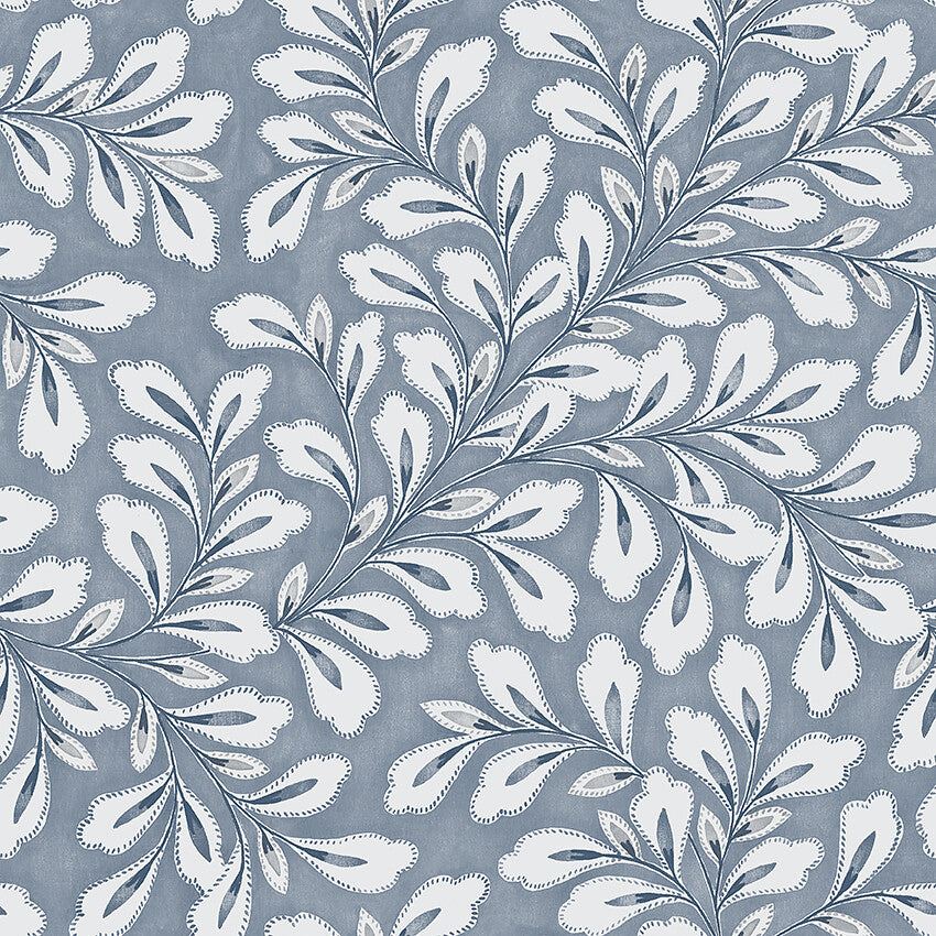 Coloured in a beautiful and calming palette of muted blues, our Liv wallpaper celebrates the effortless and iconic charm of Scandinavian design. A whimsical pattern of simple yet stylish leaves are lit up on the wall through a clever play of colours to give the paper depth and interest.