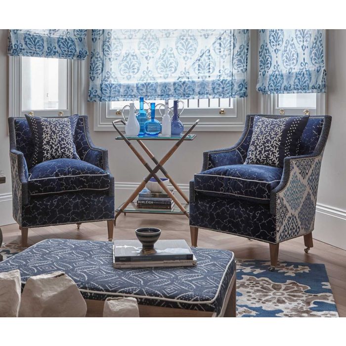 A wonderfully rich indigo print on a subtly lustrous linen-look weave, a perfect fabric for stunning upholstery, curtains, cushions and bedcovers.