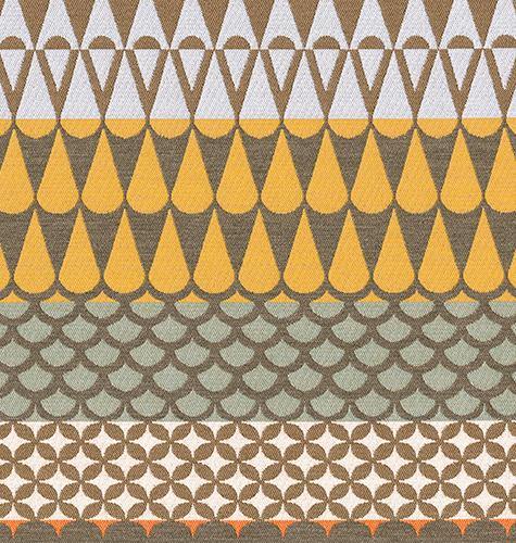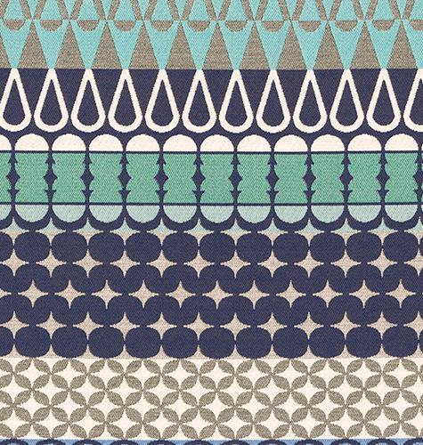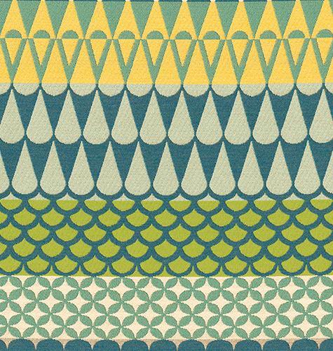Playful Majalis channels the Asiri women of Saudi Arabia whose vivid frescos wrap entire rooms in colorful geometric motifs. Like their traditional paintings, Majalis’ seven spicy colorways (both monochromatic and bright pairings) express eclectic individuality in a 17-plus-inch vertical repeat of patterned stripes.