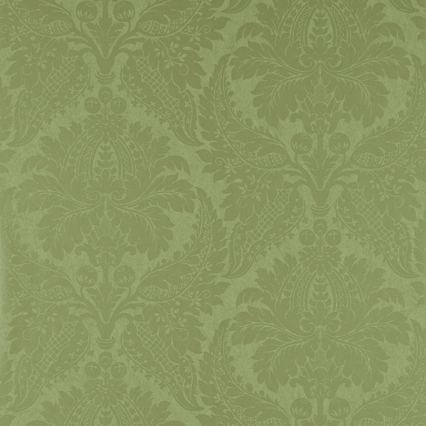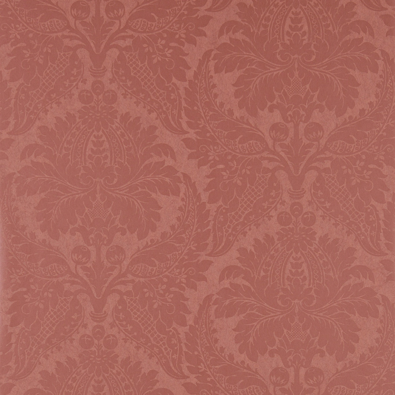 With typical motifs of stylised fruit and scrolling leaves, this understated elegant wallpaper was inspired by a grand baronial damask design dating from the early 1800s. The colour balance is achieved by printing colour over a metallic background. Use in rooms where the light catches the design, and team with the fabric of the same name for maximum impact.