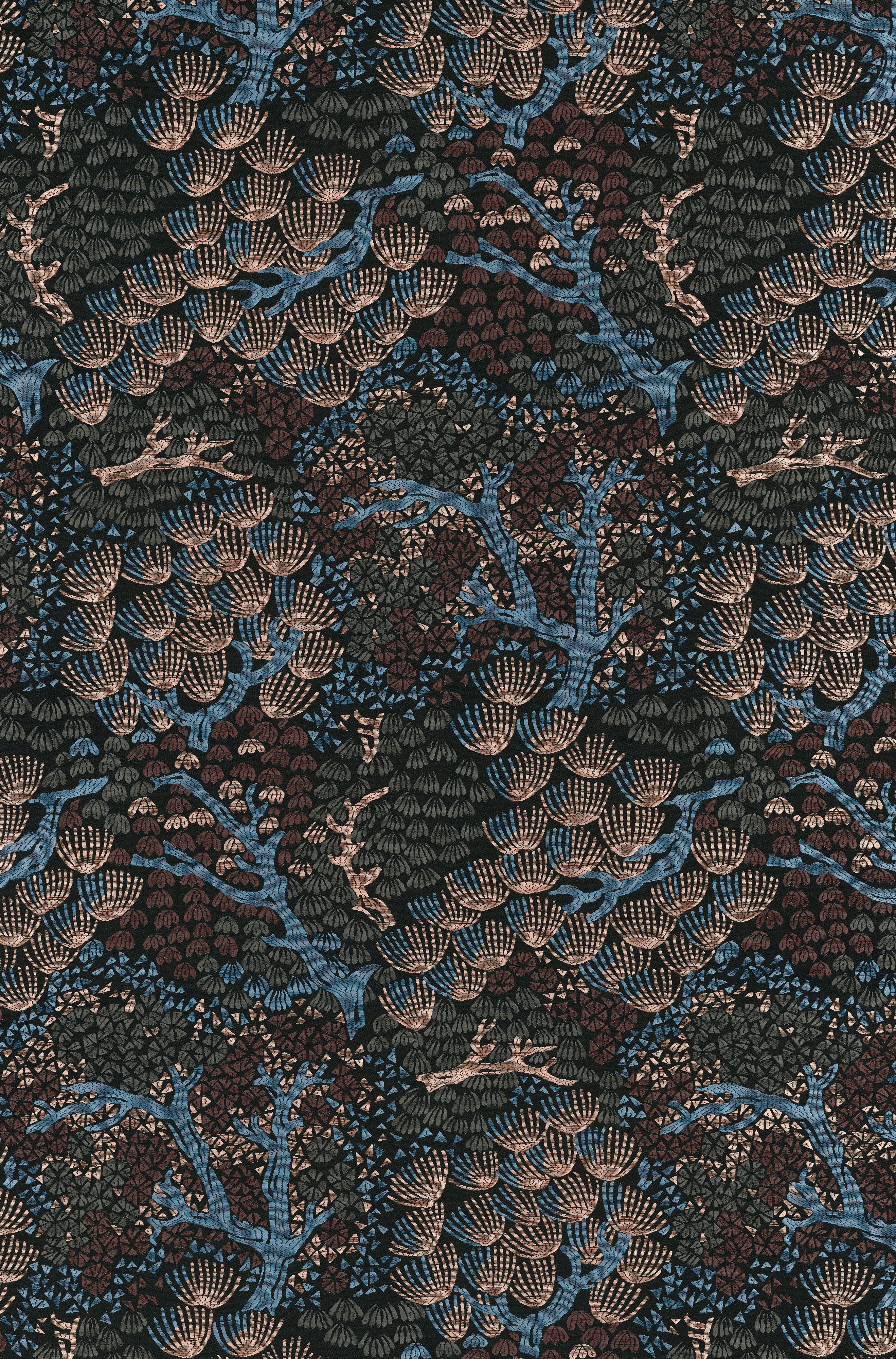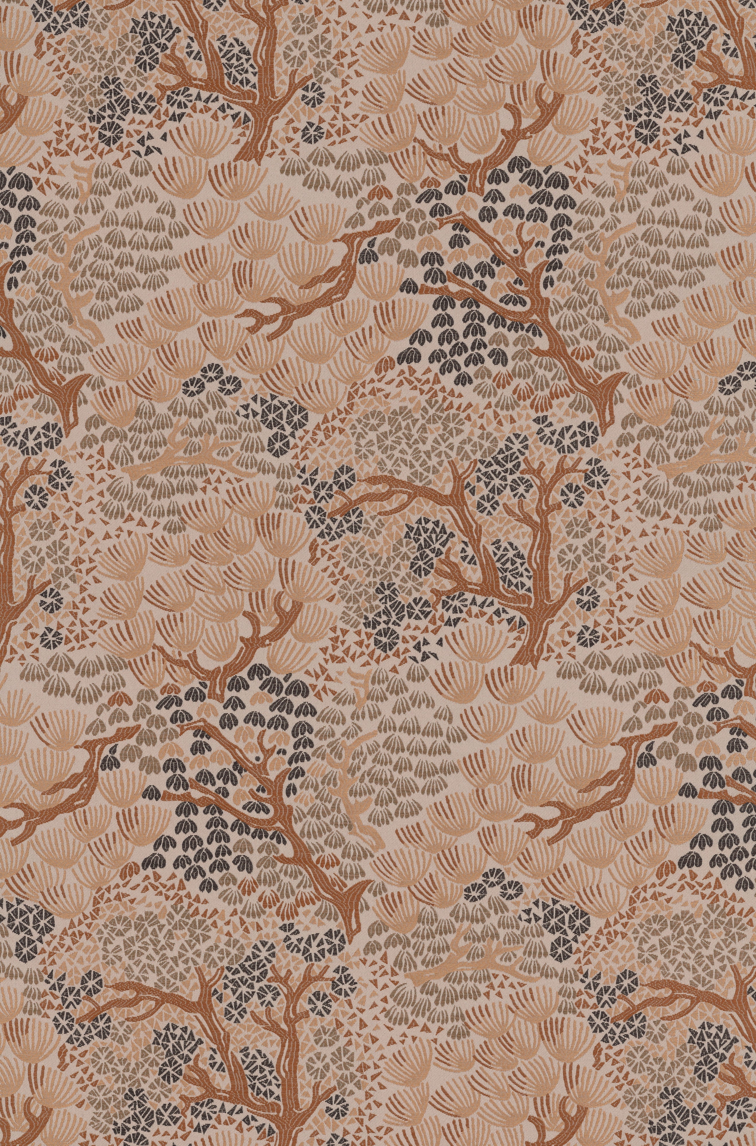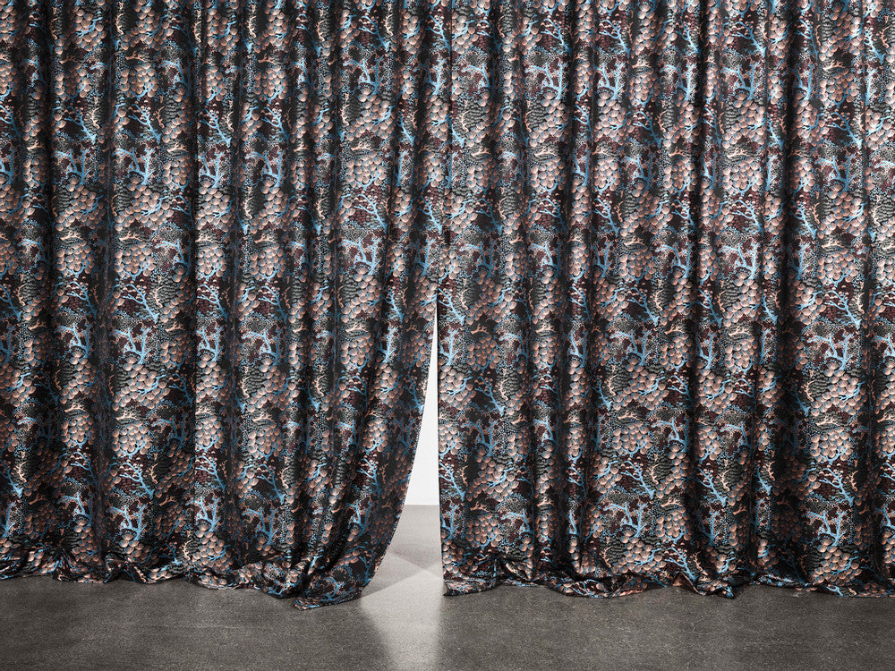 A rich jacquard weave that looks embroidered, Mirari brings to mind Japanese forests, otherworldly and dreamy with Kimono-influenced colour settings. A sateen weave in the base gives it a subtle shine, while the textured outline adds depth and evokes the brocades of high fashion. An elegant voluminous drape, the fabric has a tightly edited palette of juxtaposed compositions of rose camel, lemon grass lavender and rose blue, a shimmery silver blue and buttermilk, and the earthy resonance of golden brown.