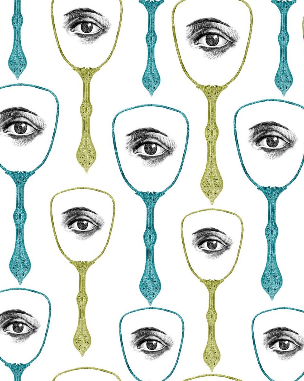 Repetitive pattern featuring a female face with red glasses.