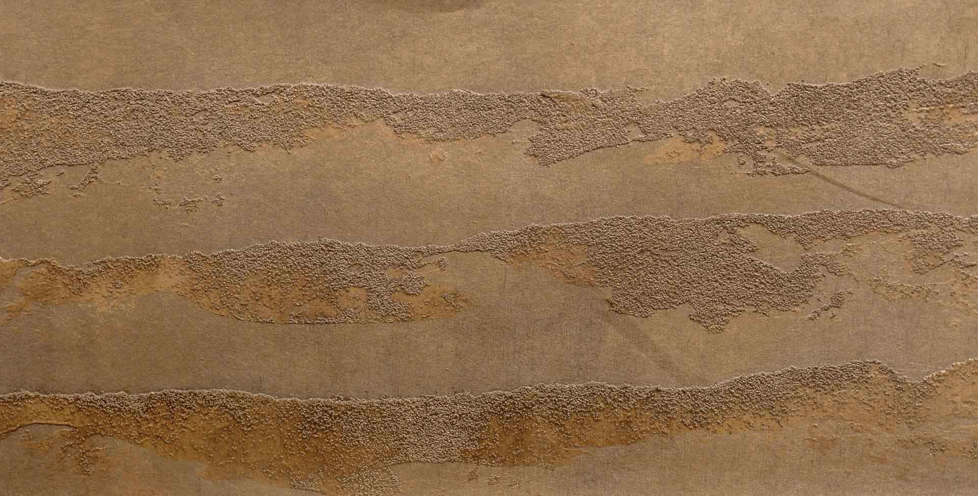 An airy, effervescent collection, Mindoro is a custom made wallpaper featuring a gradient waterfall of metallic leaf.