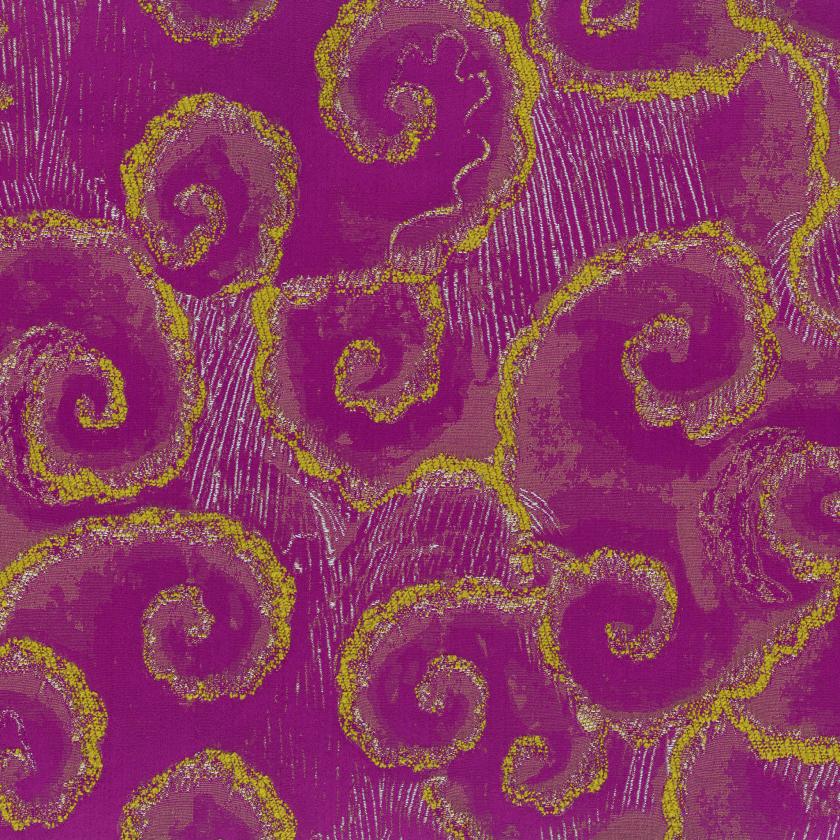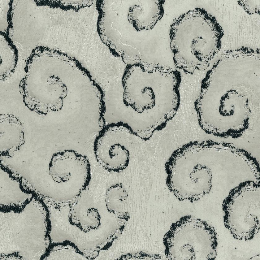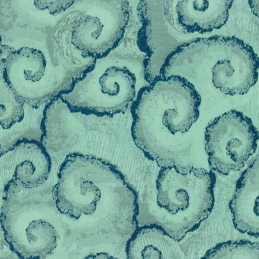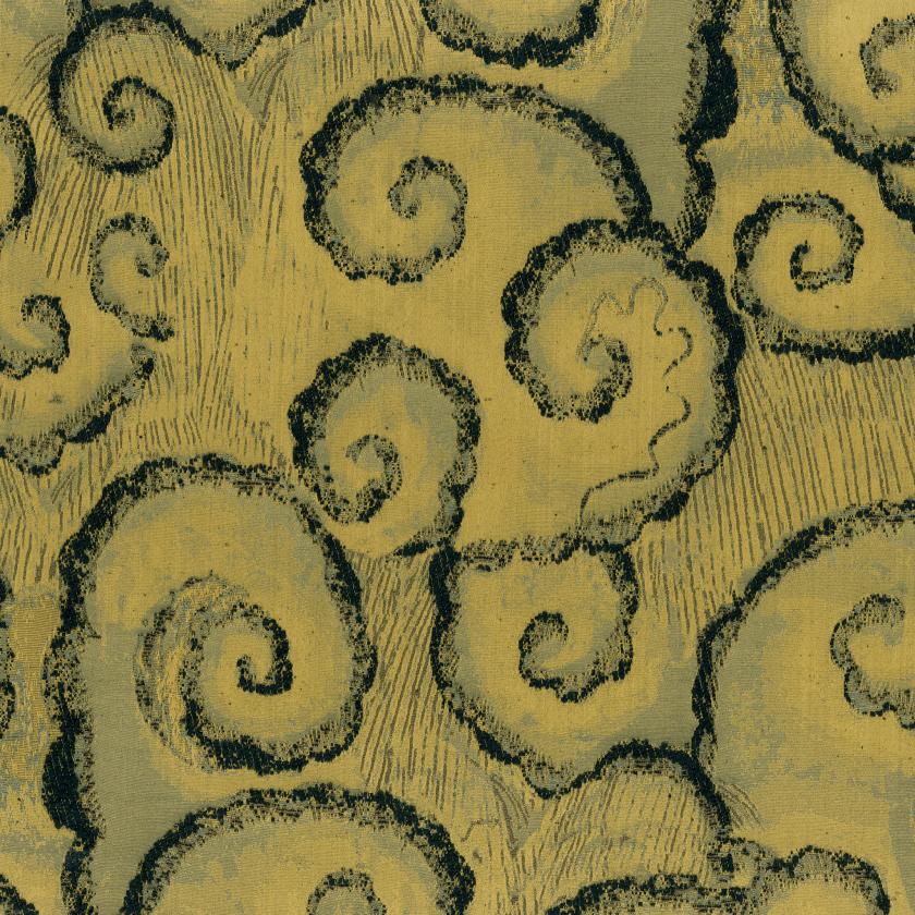 Jacquard in relief with a bouclé texture. The design replicates a detail from a Mughal miniature depicting the monsoon: a sky filled with clouds and rain, a subject frequently found in miniatures. Suitable for upholstery.