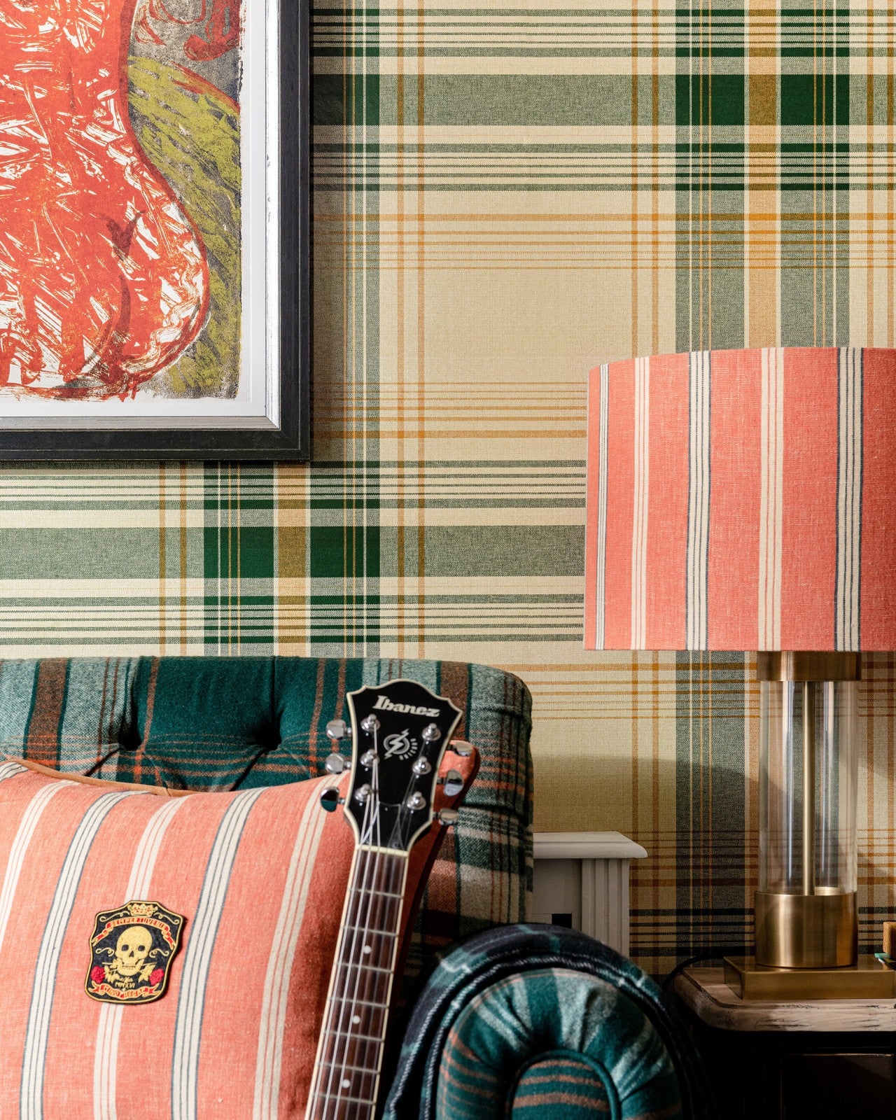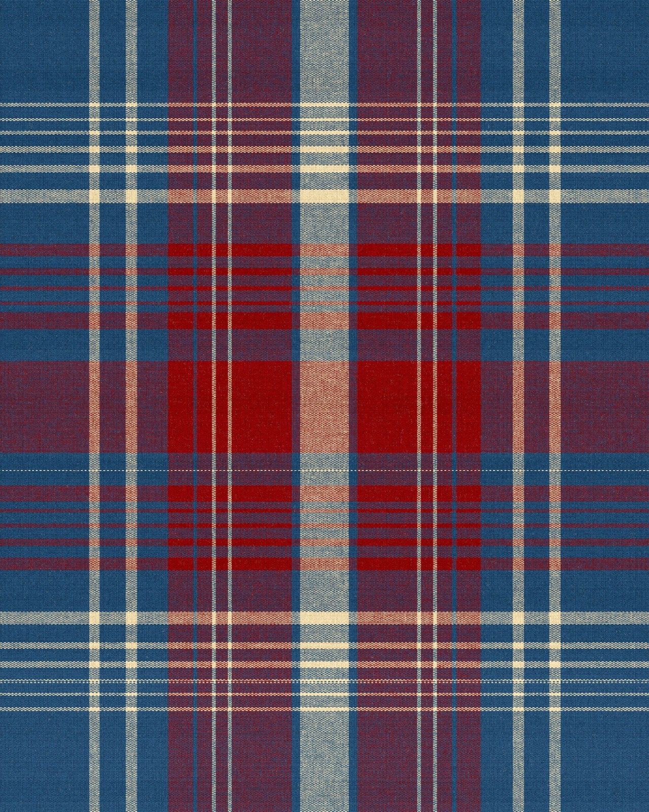 Channel the charming characteristics of traditionally woven cloth with our take on iconic tartan plaid. A simple yet personality-filled design composed of tonal stripes built up in layers, MONTEREY exhibits the depths of colour historically achieved when multiple threads are combined on a loom. The supersized nature of the checks simplifies and modernises the age-old pattern while flecks of white create the feel of a light fabric, the Sapphire palette artfully merging rich red and royal blue.