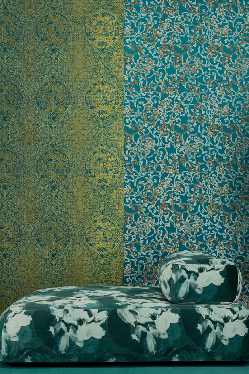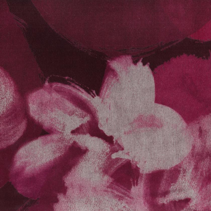 Printed fabric on velvet ground with a very special and extremely complex technique of the discharged printing. Here, unlike digital printing, the colour of the ground is solid. The pattern is a flower/non-flower, as if drawn by soft brushstrokes. In a cotton of excellent Italian quality, this velvet is suitable for heavy use.