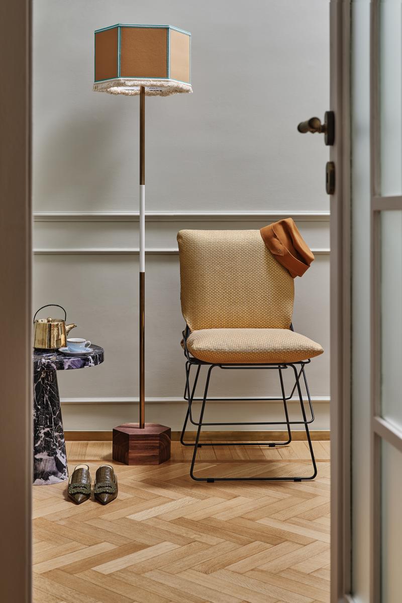 The theme of gold returns in a new interpretation. Different gold yarns - laminated gold and twisted gold - in multiple colour variations replace the coloured yarns of the matelassé Nexus.
