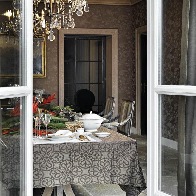 The design style of Norte Same Bells 2 encompasses elements of damask, floral, and ornamental patterns. The combination of these design styles creates a visually rich and intricate fabric