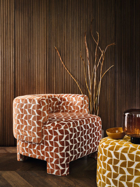 On a beautiful and deep texture, this velvet bears the name of a small plant from the Andean plains. Like foliage, the quarter-circles point in many directions. Contrasting with the perfectly matte background, the glossy patterns give the fabric an air of refinement.