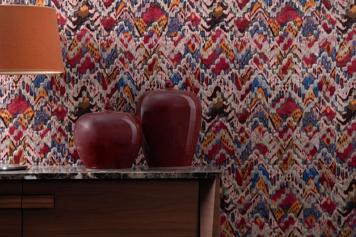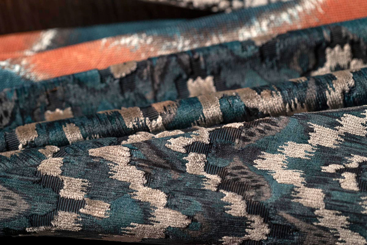 OCEANO: the fabric has an innovative design, technique and colours, combining jacquard velvet with printing. Ideal for upholstery.