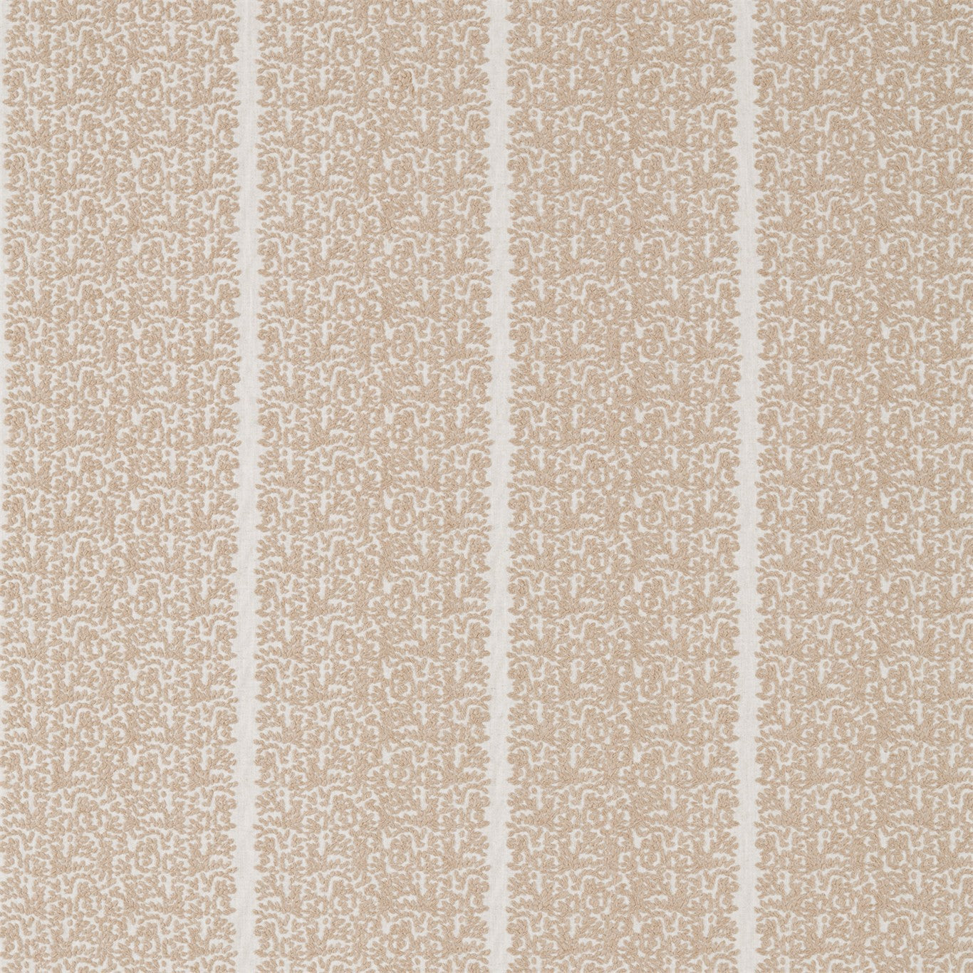 Featuring twisted cotton-blend yarns embroidered on a luxurious heavy linen fabric, this design evokes naturally organic textures whilst creating an elegant wide stripe, best displayed on curtains.