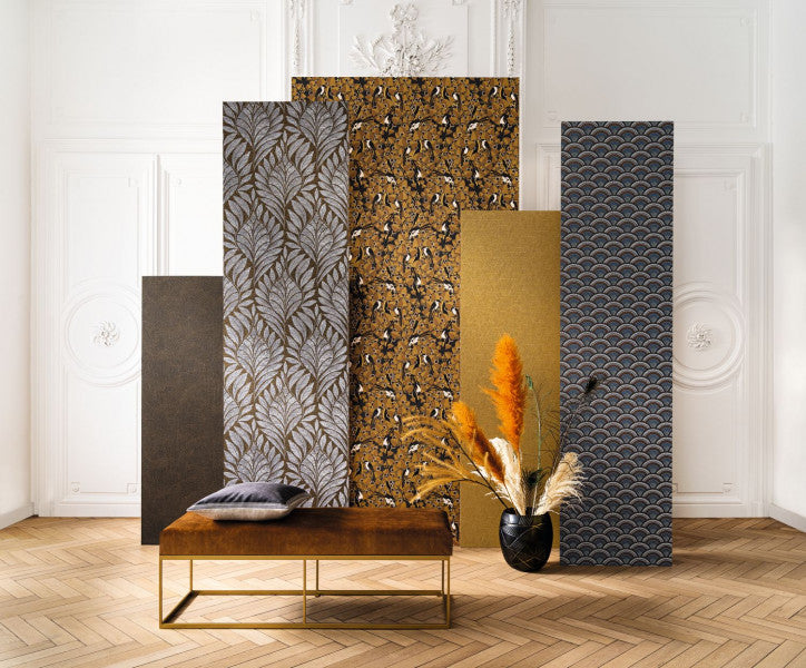 Produced using four films, Otto wallpaper palmette has beautiful depths, alternating lustre and matte. It recalls the work of Otto Wagner, founder of modern Austrian architecture and advocate of functionalism.