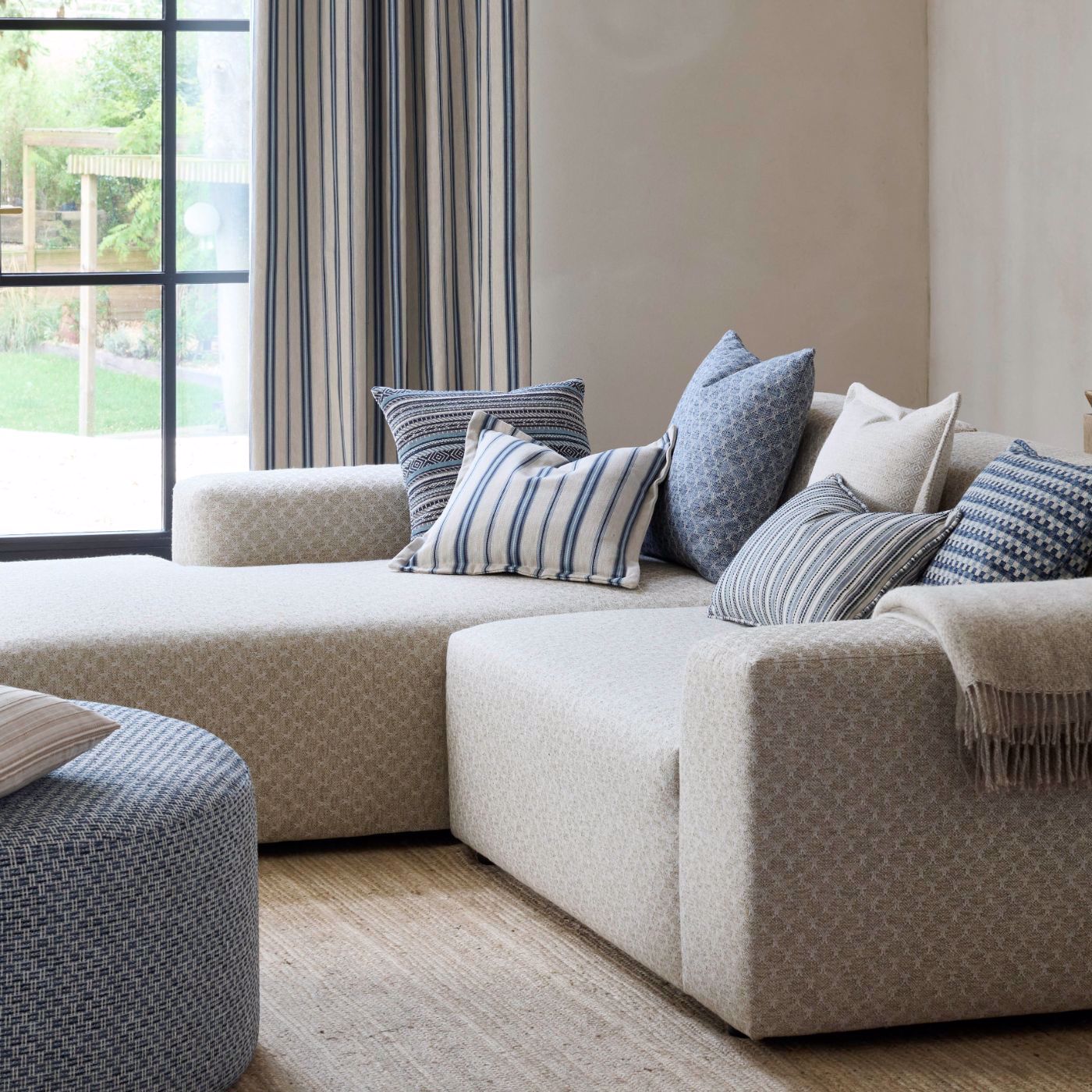 Pano is square check using the tonal colours of each thread in the different colourways to create depth and interest. Highly textured, this design has the quality of a boucle, very robust, but offers its own unique style.