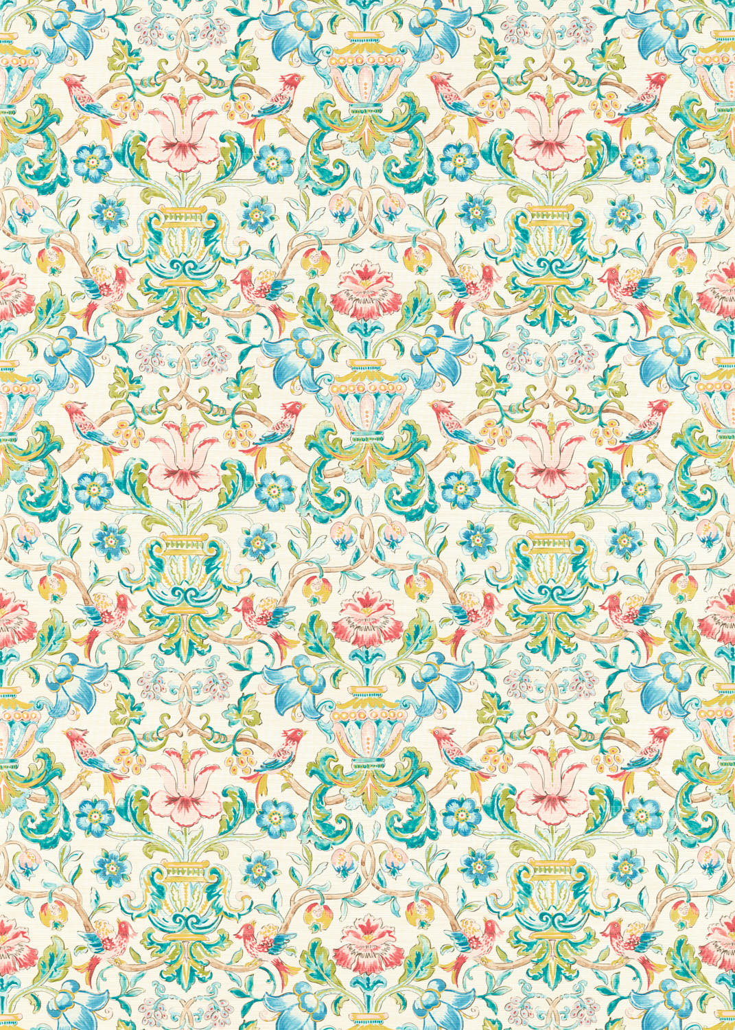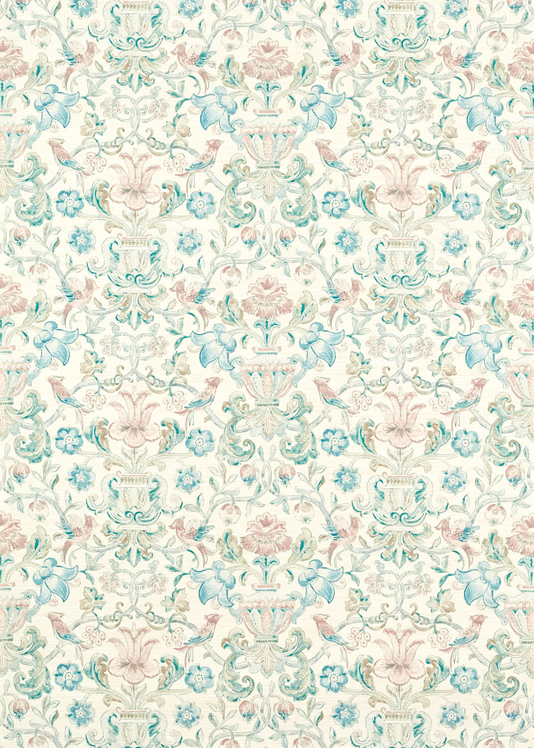 This all time Zoffany classic has been repainted in a relaxed watercolour style. A hand drawn interpretation of an original document, its influences are thought to come from a late 19th century French artwork, painted to emulate earlier (17th to early 18th century) woven and embroidered textiles. Quirky and uplifting, Baroque-style scrolling foliage and stylised flowers give an overall effect that is rather grand, hence the name Pompadour.