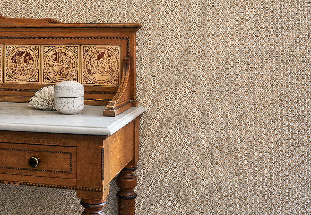 Rattan is a medium to small-scale design of layered diamonds. Calming colors mixed with the rustic texture establish a more relaxed and casual feel.