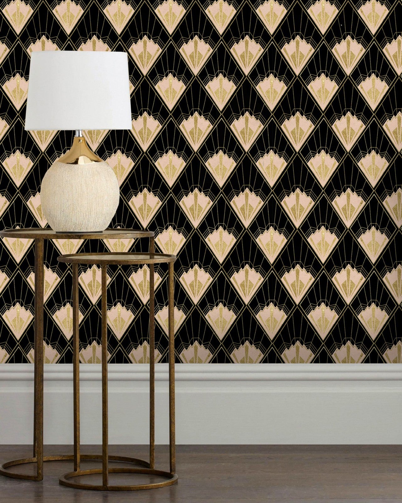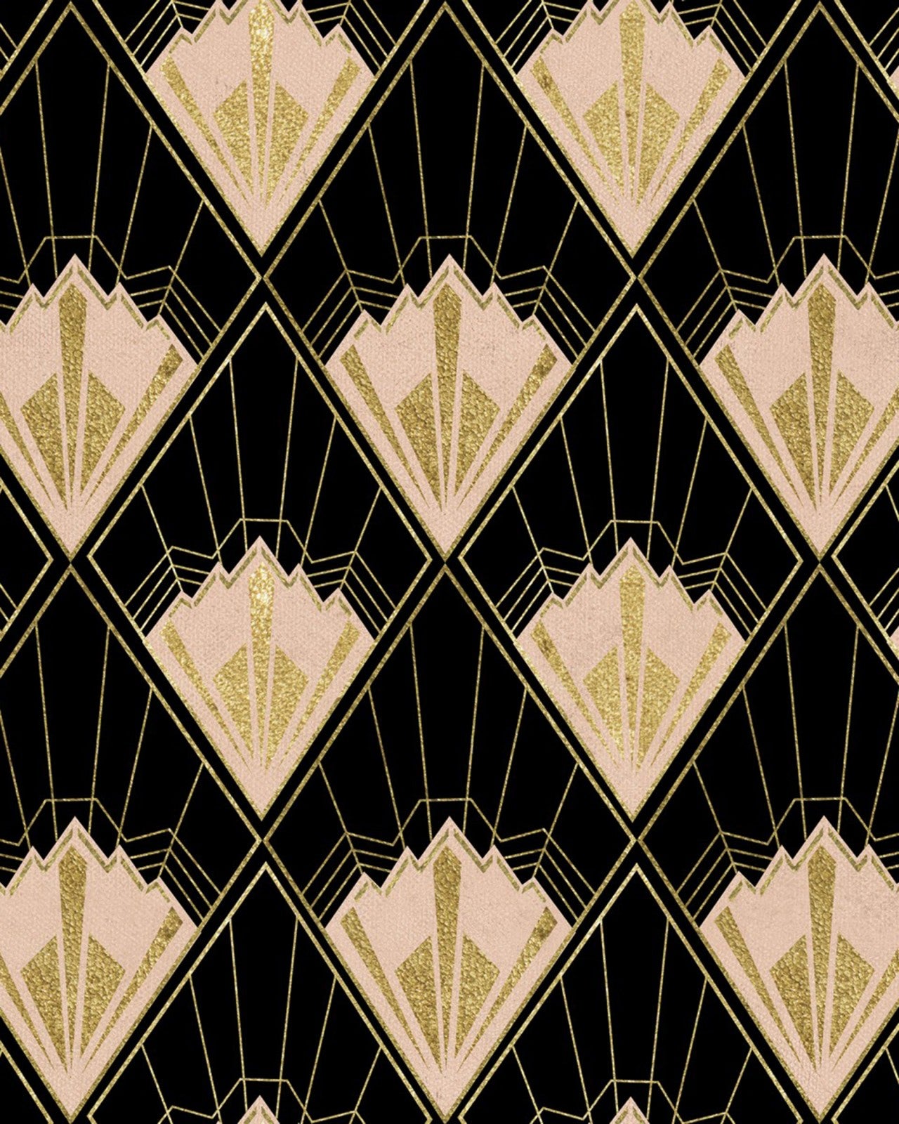 A repetitive pattern with very chic design on a black background, inspired by the luxurious lifestyle of the roaring 20’s.