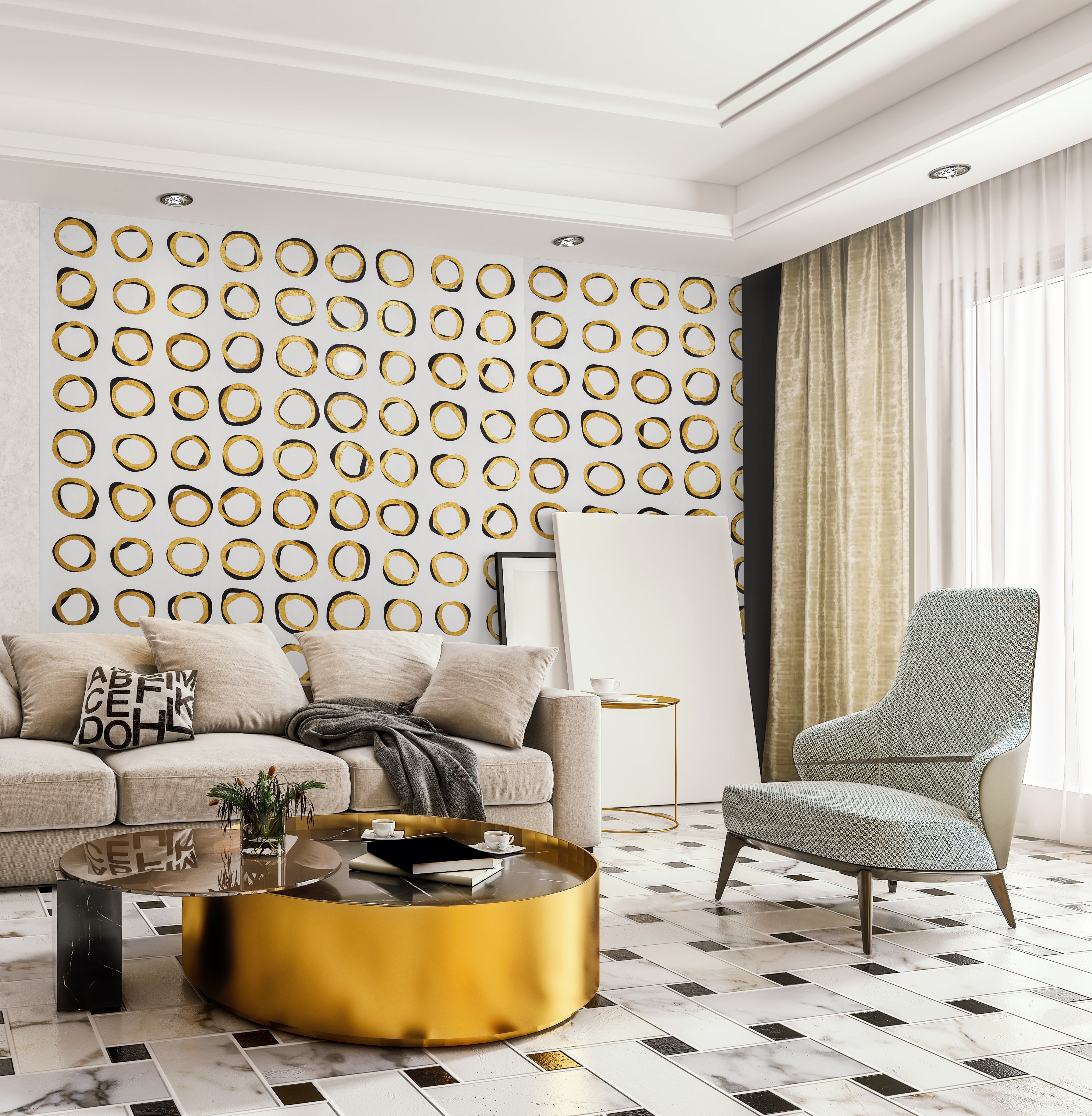 Classic and contemporary, the handmade Rings collection will be a talking point in any space. The wallcovering features organic circular shapes combined with layered metallic leaf and beautifully repeating pattern evokes effortless elegance.