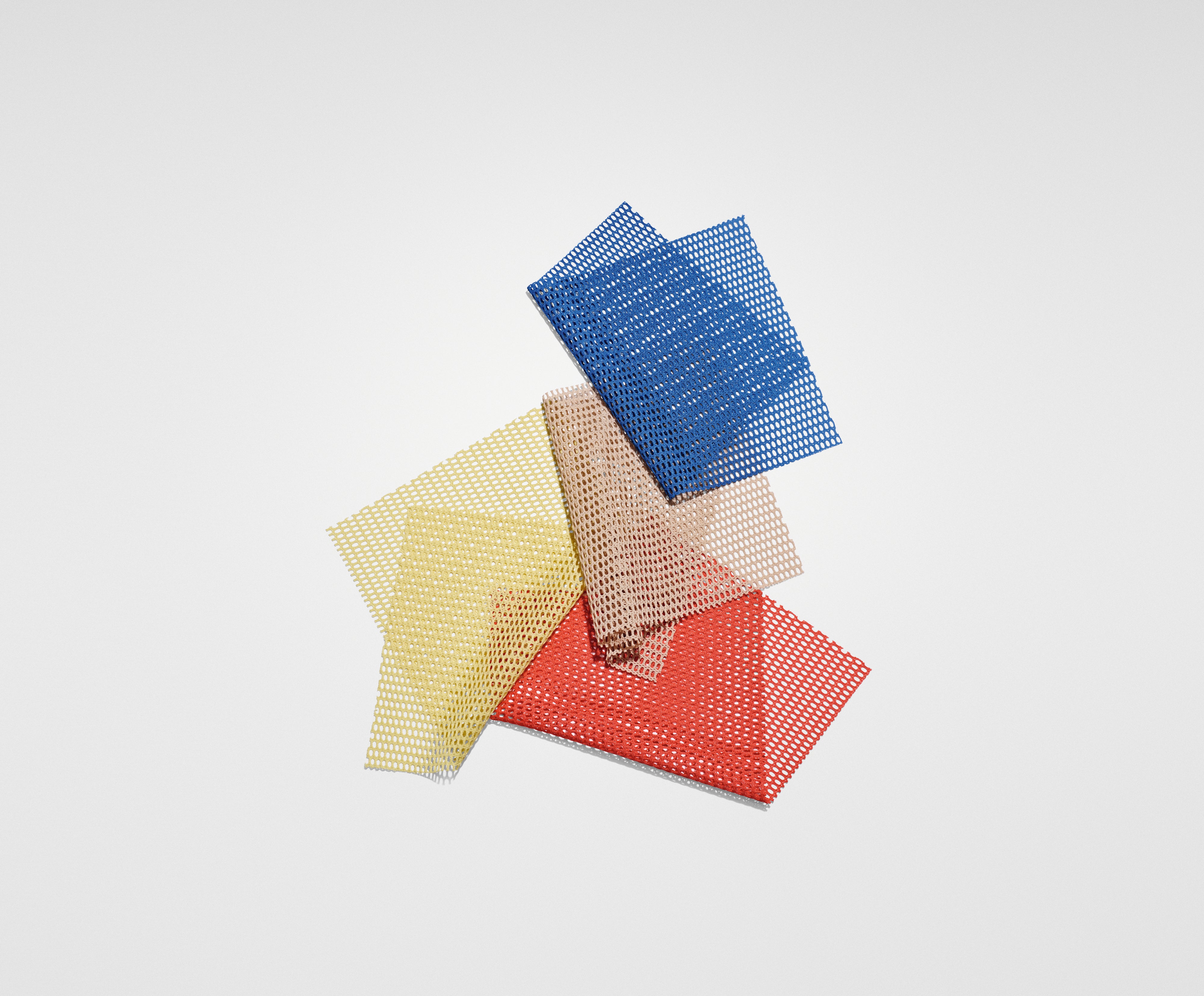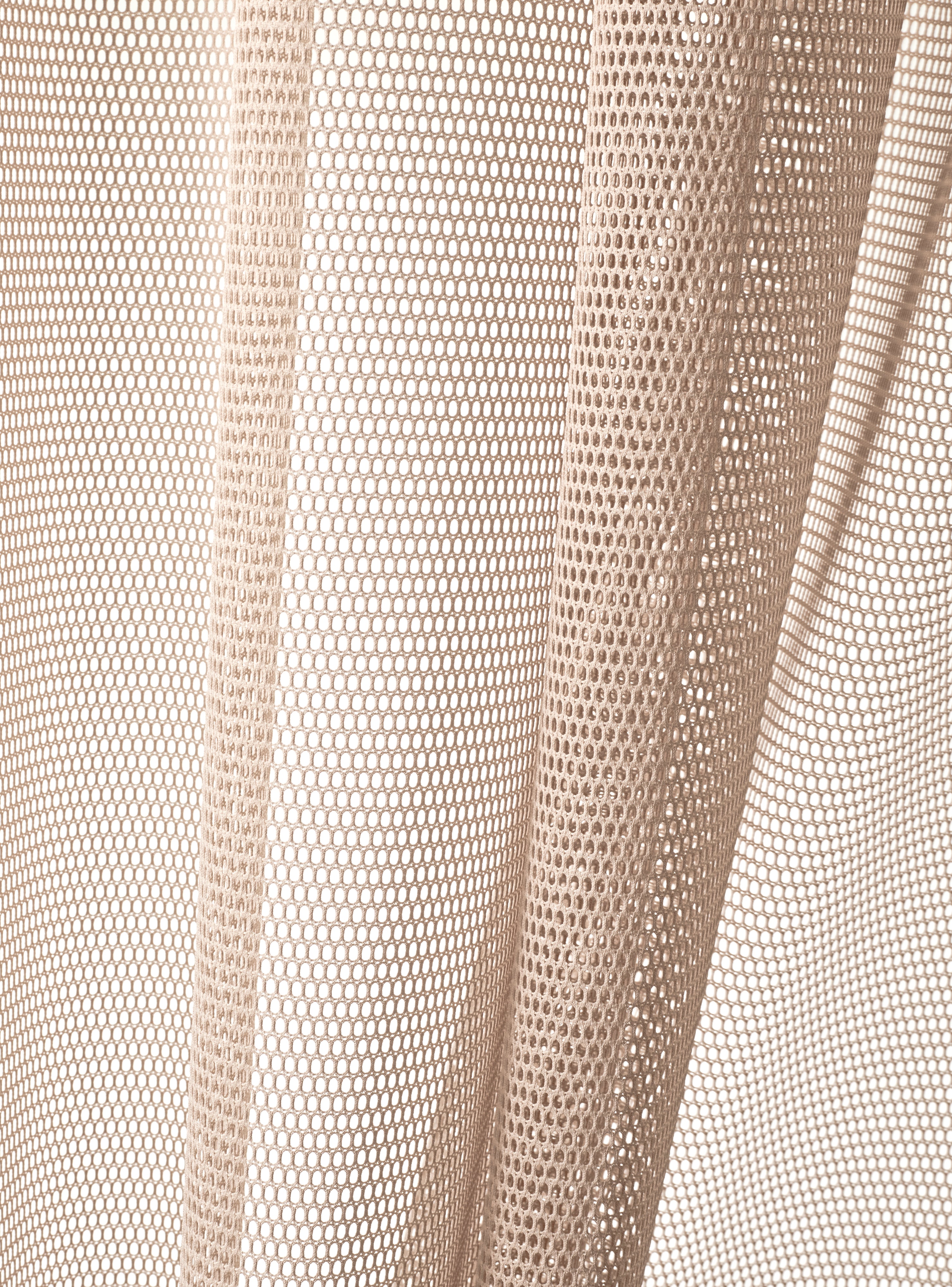 Rocket is constructed with a warp knit. During this technique, the loops are interlocked vertically up the length of the fabric resulting in a firmer construction than conventionally knitted fabrics. Rocket has a strong futuristic expression and features a chainmail-like pattern of oval spaces.