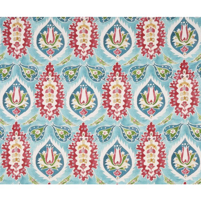 Inspired by the magnificent gardens of the Alhambra in Seville and the exotic use of colour pigment. A colourful and artistic rendition of geometric pattern and digitally printed onto a viscose linen ground cloth. Perfect for curtains, blinds, bedcovers, cushions and general upholstery. In one brilliant colourway.