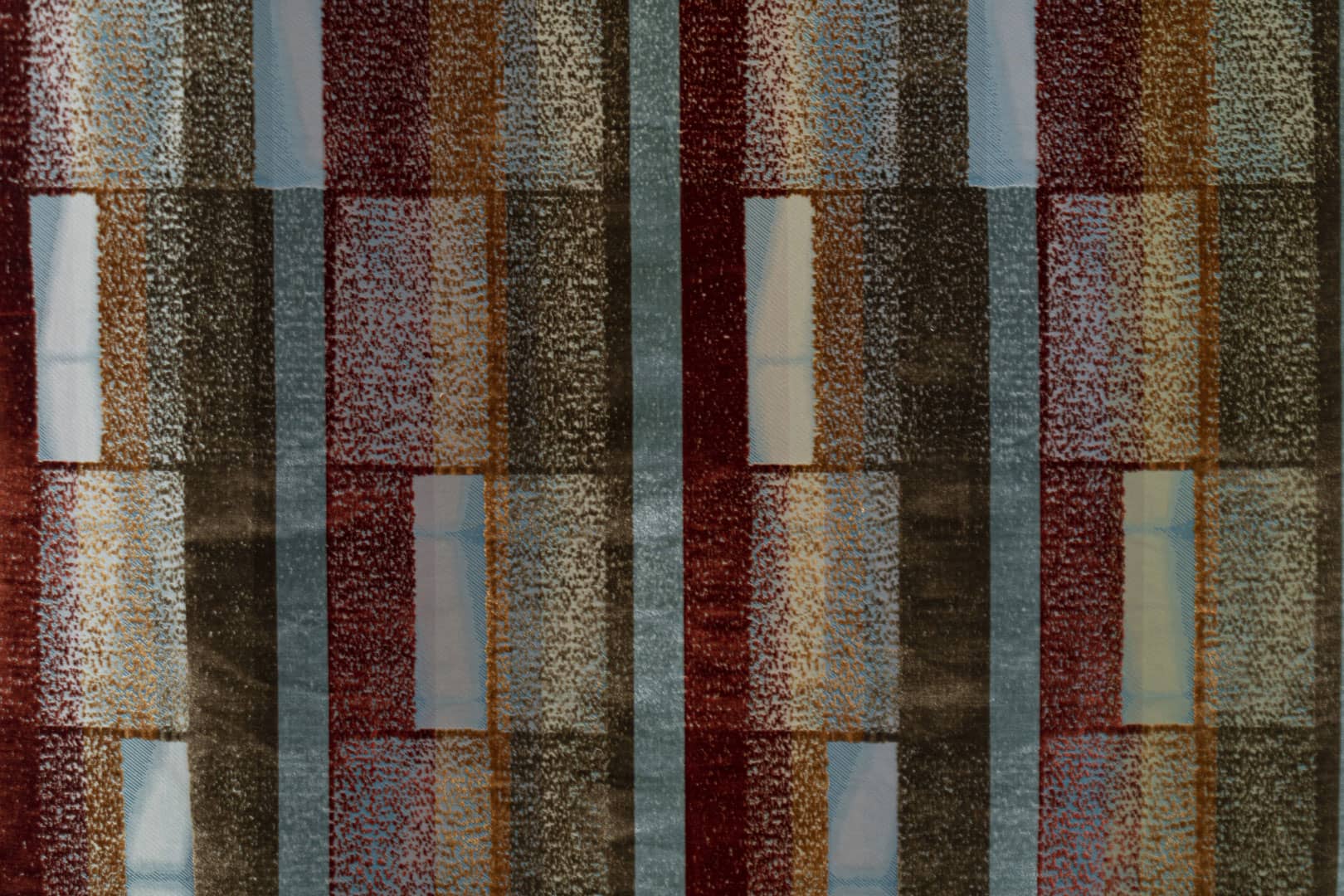 High-quality silk cut voided velvet with a cotton and polyester base, woven on our “on a rod” looms, which are the ultimate expression of BROCHIER’s craftsmanship. Scottish is characterised by an unusual design, proposed in a single multicoloured version, made on a coloured striped chain, interwoven with irregular horizontal bands, both in size and workmanship. Suitable both for upholstered furniture and to embellish rooms, making them unique.