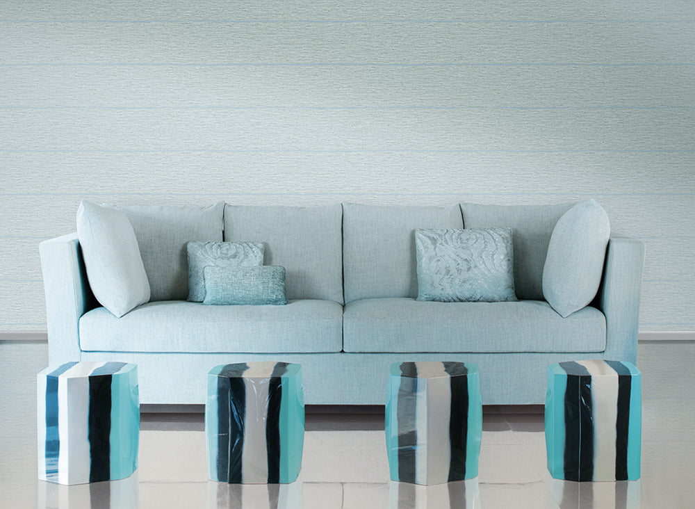 This variant of the Soho wallcovering is enriched by the addition of horizontal, tone-on-tone, slightly irregular stripes repeating every 21 cm. This unexpected detail interrupts the continuity of the texture in background, adding a touch of movement and further refinement.
