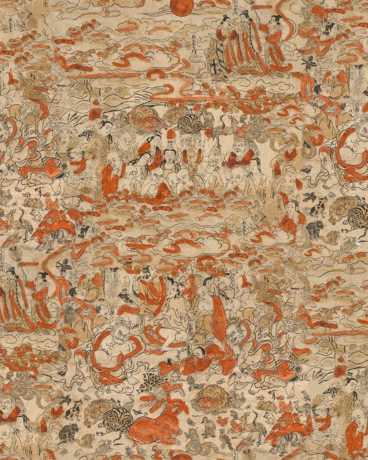 Step in a little closer – from far off our SPIRITUAL JOURNEY wallpaper may seem like an abstract squiggle pattern, but on closer inspection you’ll discover a host of hand drawn characters living life on a pale beige background among daubs of colour. Floating like smoke or mist, a rusty, orange tone navigates its way around people, plants, animals, clouds and calligraphy, all of which are illustrated as simple line drawings in ancient Chinese style. Take time to roam every inch and immerse yourself in a multitude of stories artfully entwined into each other, waiting to be discovered.