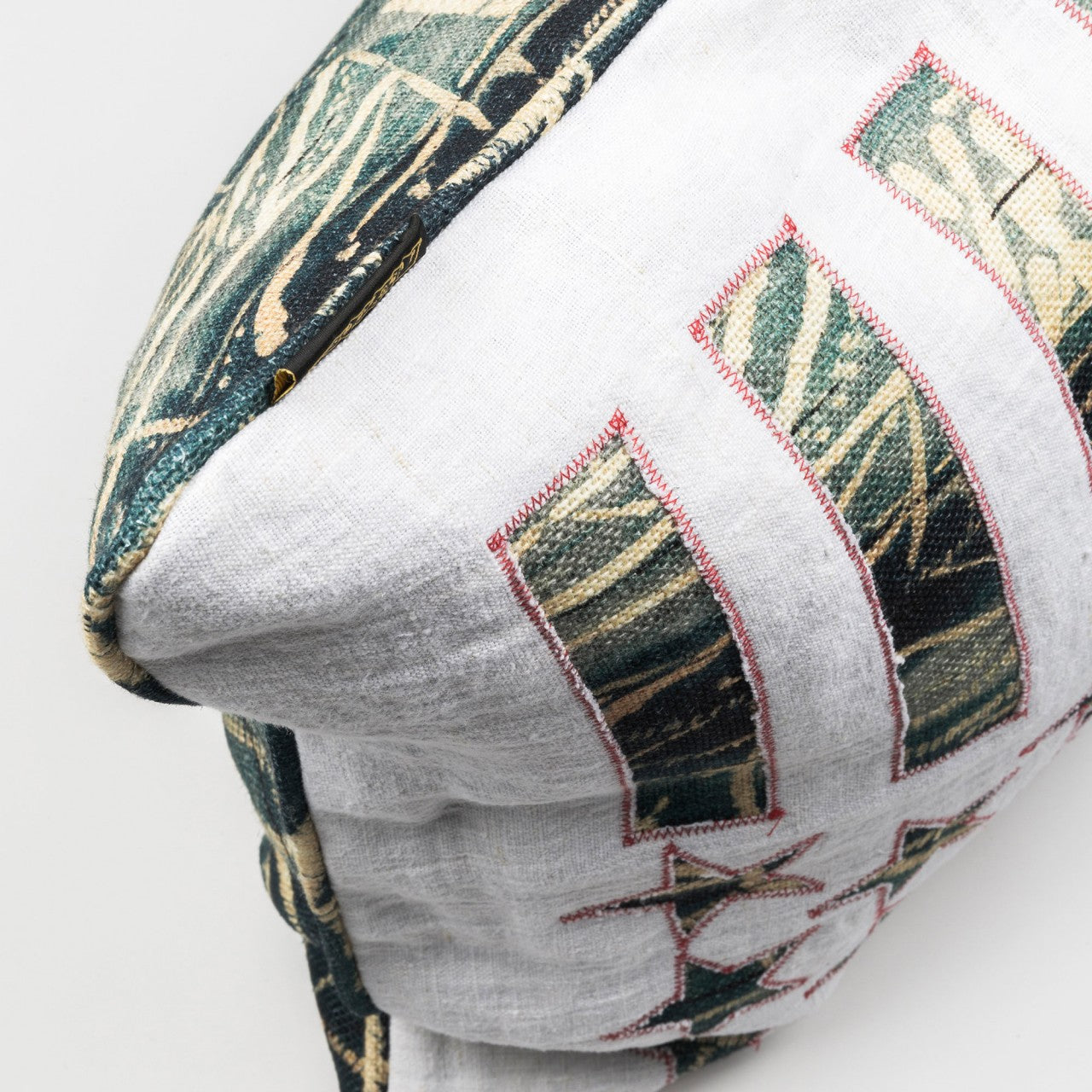 A beautiful statement cushion with one side made of patched stitched Stars and Stripes on white linen and on the back with Bamileke heavy linen.