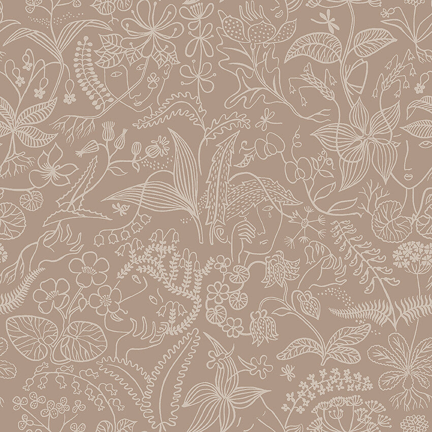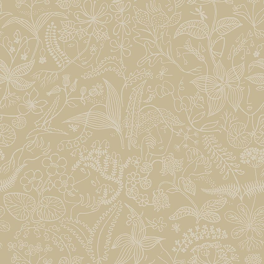 A beloved classic, our Grazia wallpaper, with a muted yellow background and light beige pattern, depicts soft flowing flowers and leaves with faces peering through the foliage. Recalling the fun and freedom of a Swedish summer garden, it adds a warm and bright loveliness to the surrounding space. Hang it in your office, bedroom or living area to enhance and uplift your interior.