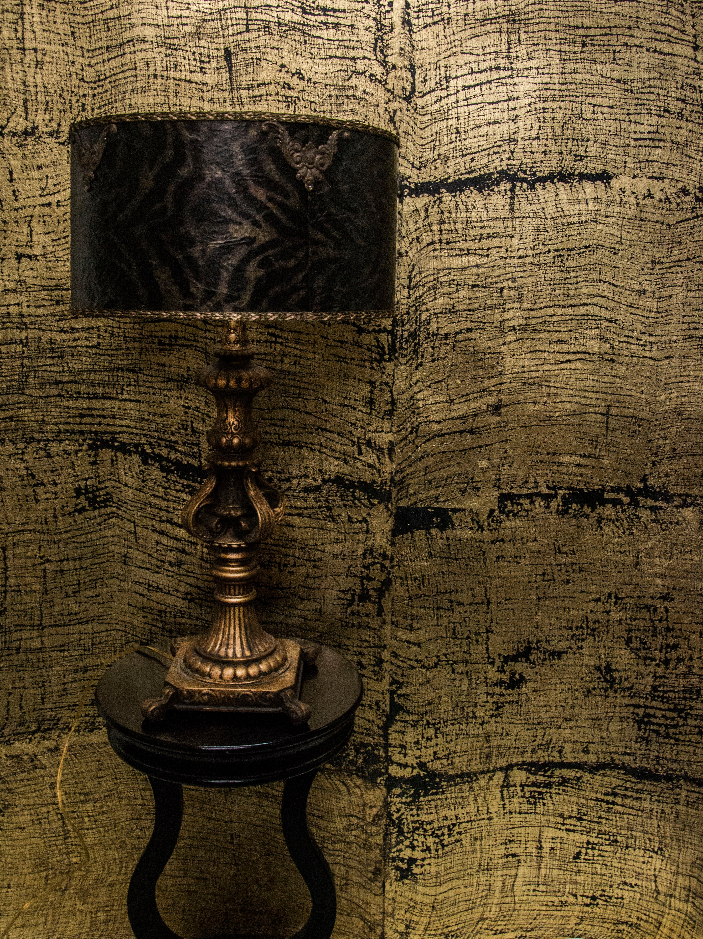 The Tide collection combines metallic leaf and monochrome palettes. This wallpaper creates a fascinating meshwork of bold color and luxurious silver or gold.