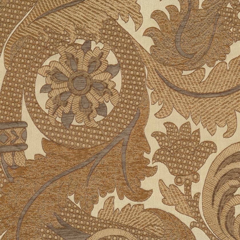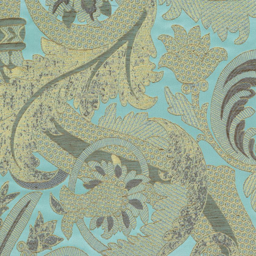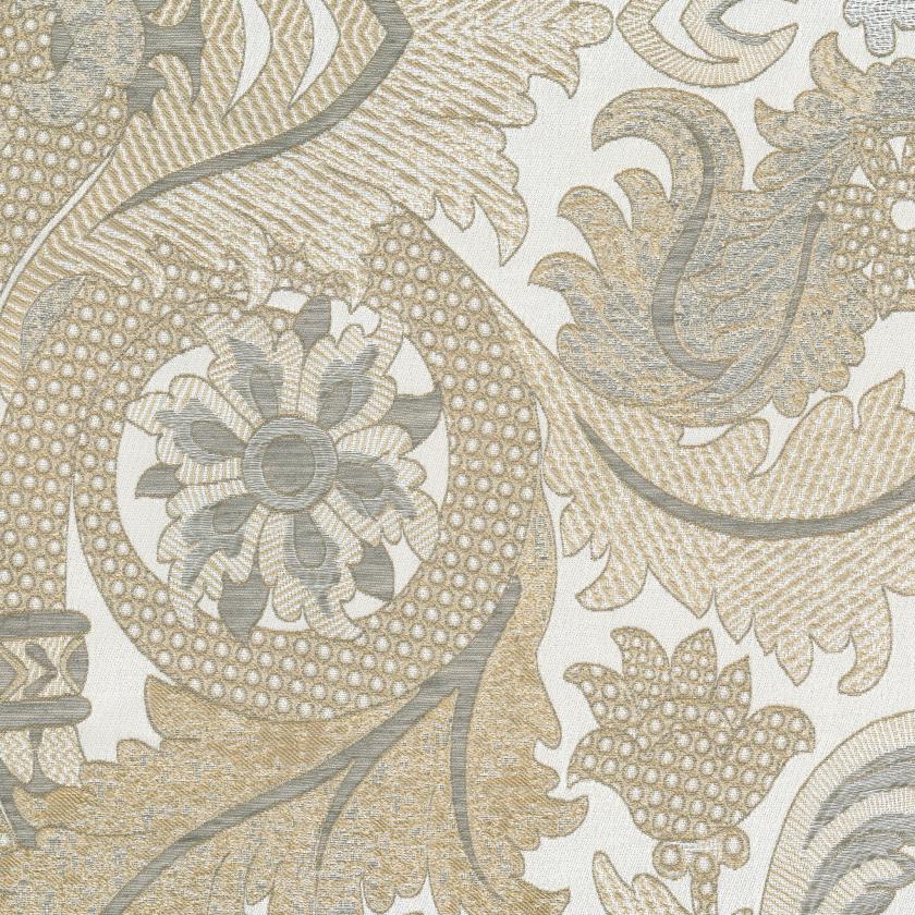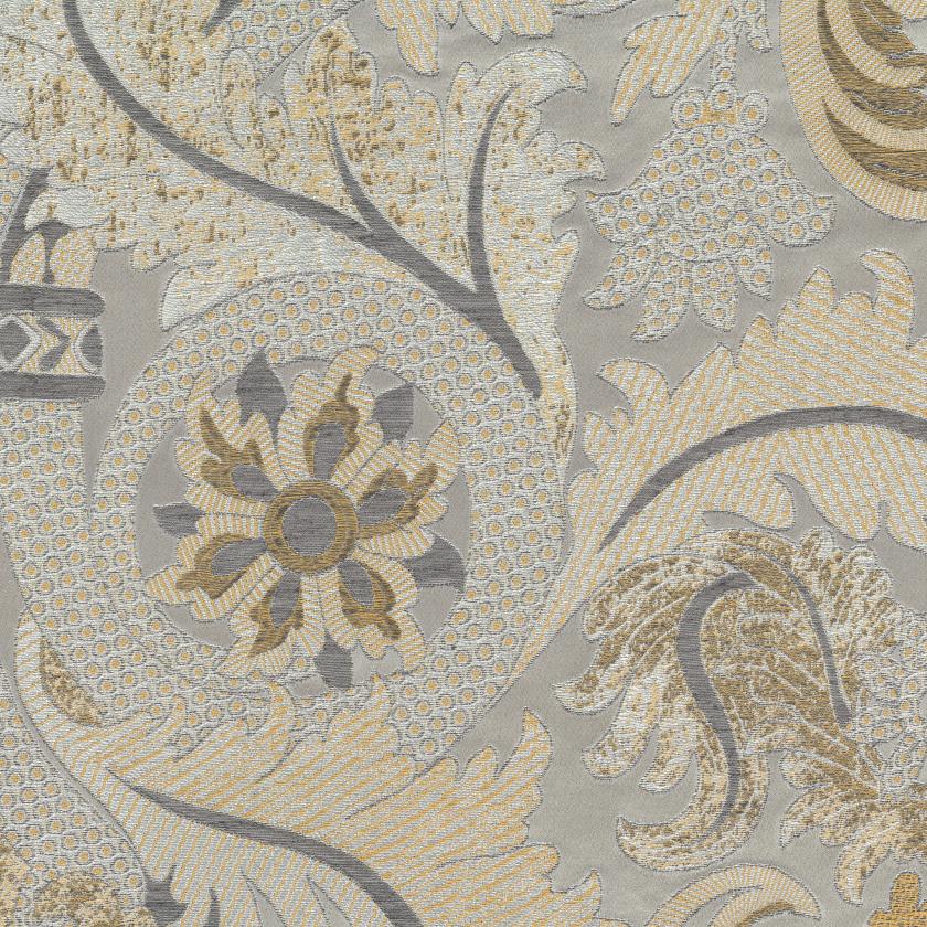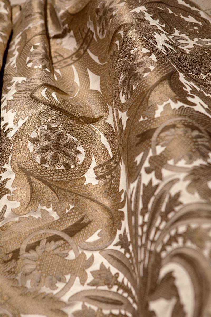 The Toledo lampas saw its beginnings in a room in a Venetian palazzo overlooking the Grand Canal, or rather with the fortuitous discovery on a wall of embossed leather dating back to the seventeenth century. Leather that tells a story, translated into silk. Suitable for light use.